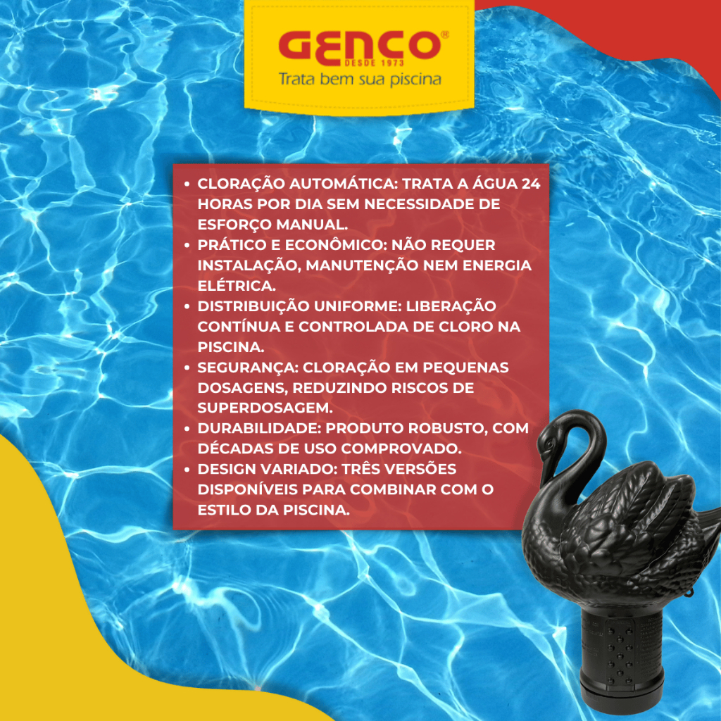 Clorador Flutuante Cisne + Pastilhas T200 Genclor Cloro para Piscina Genco