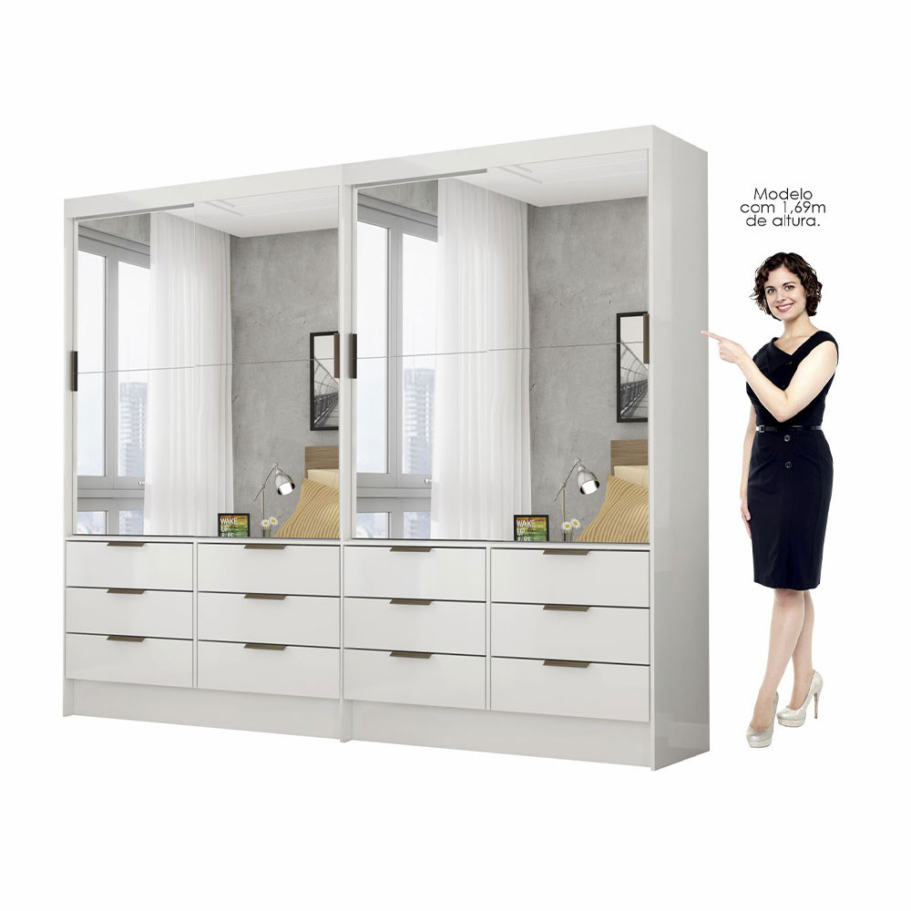 Closet Casal Duplo Sevilha 4 Portas Premium 12 Gavetas Carioca Móveis