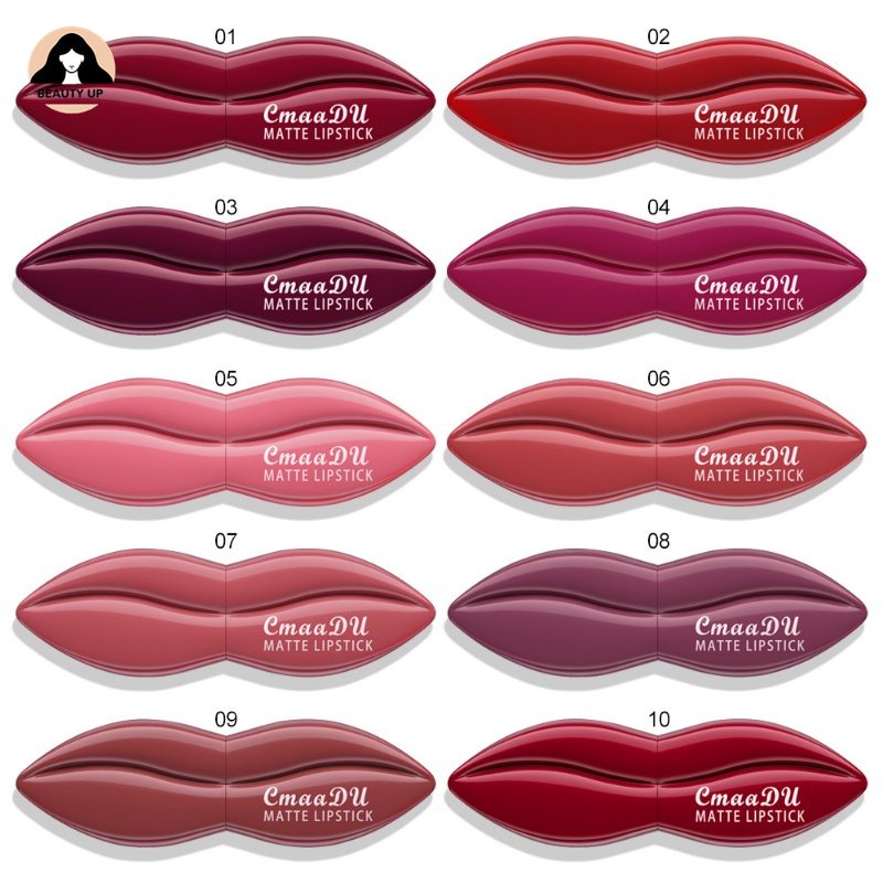 CmaaDu Batom Fosco com Brilho 10 Cores, À Prova d'água, Duradouro, Antiaderente