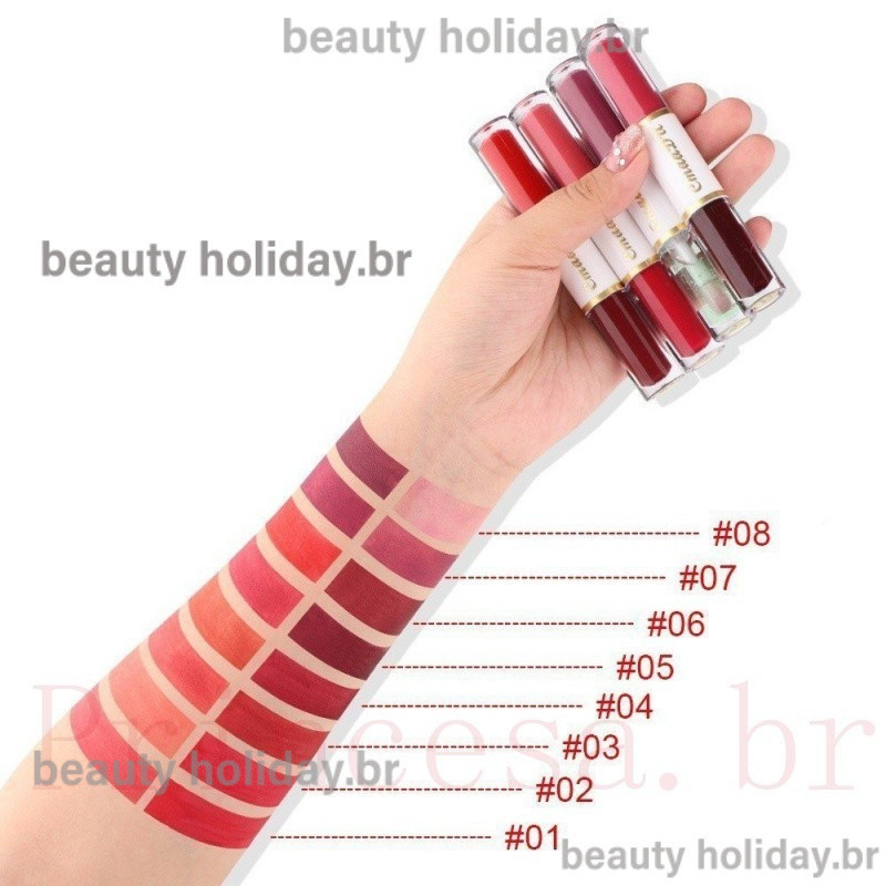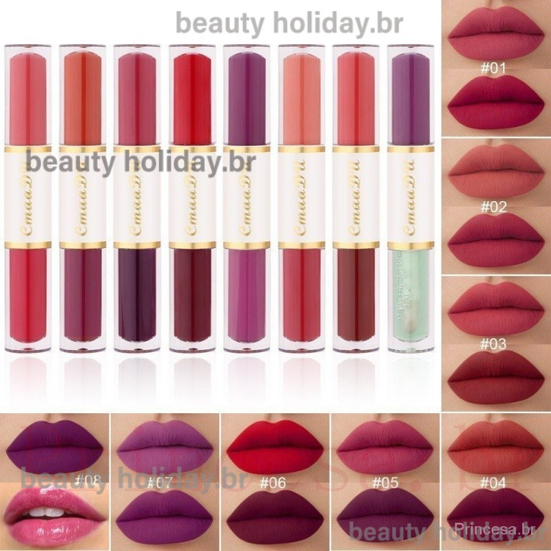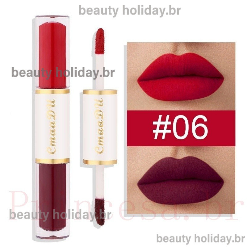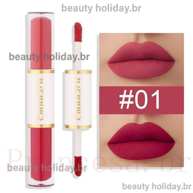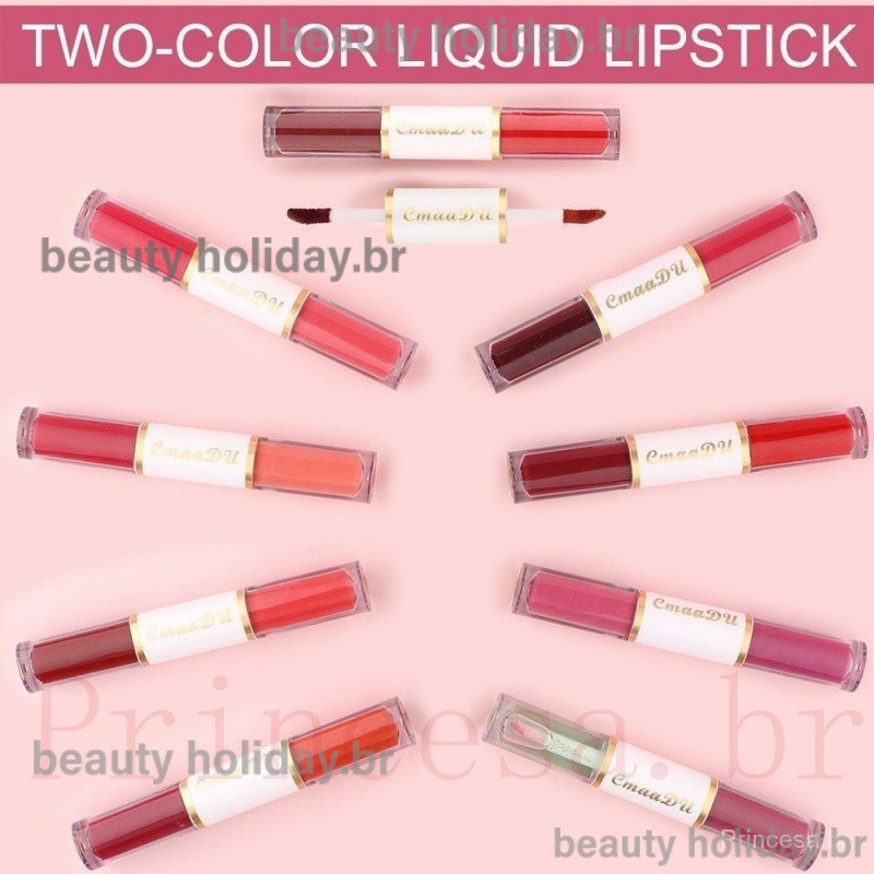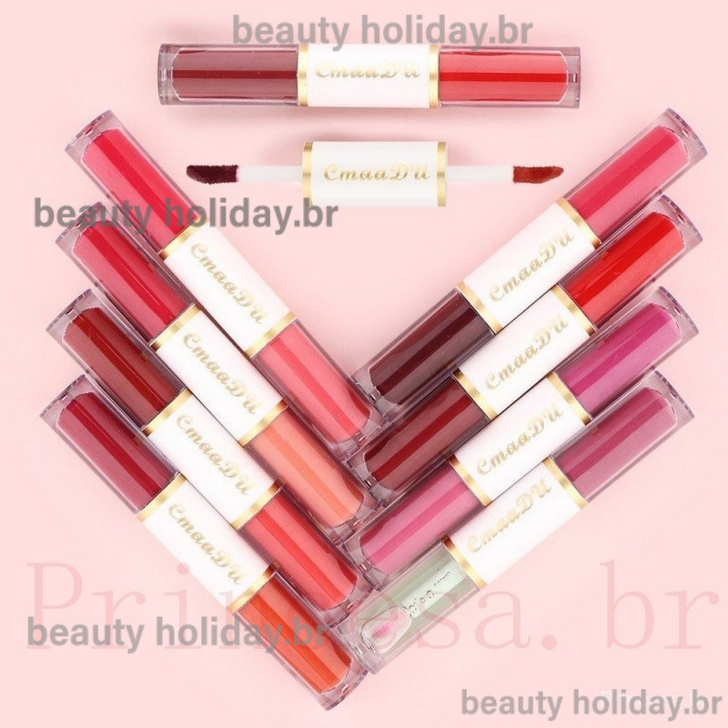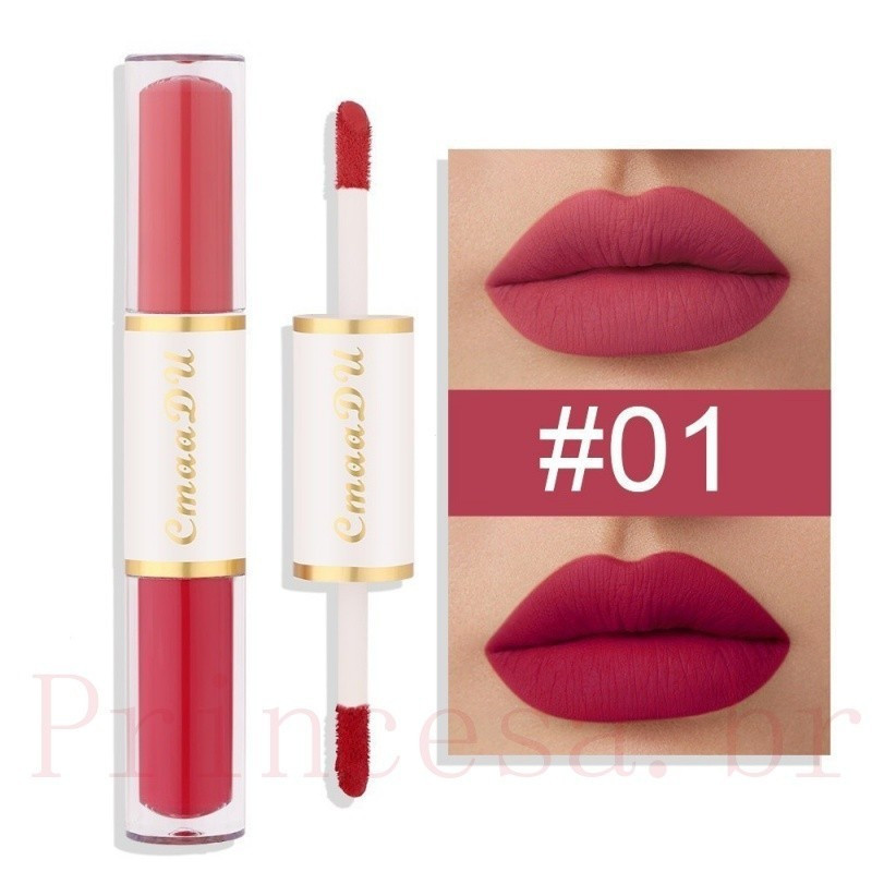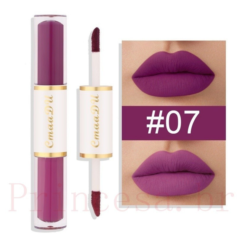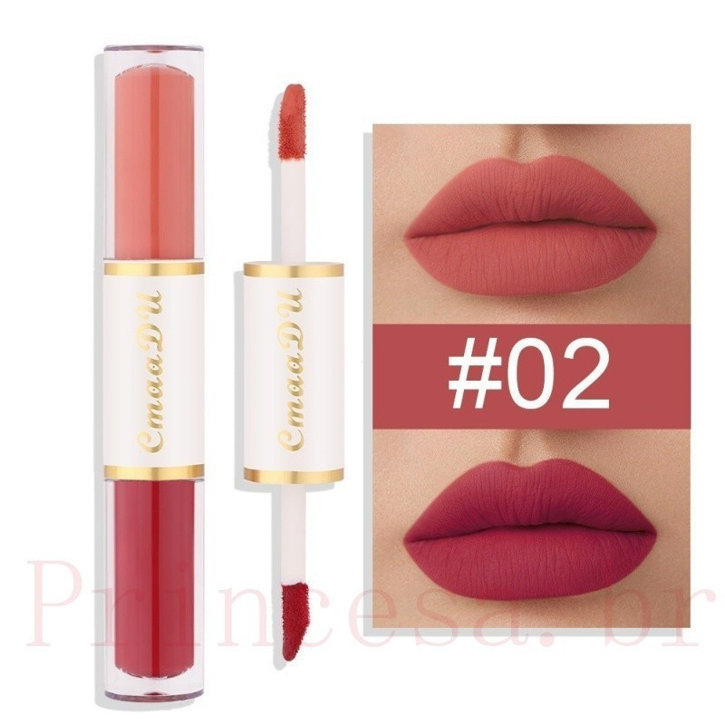 CmaaDu Batom Mate De Cabeça Dupla Copo Antiaderente À Prova D'água Maquiagem Para Os Lábios De Longa Duração Cosmética