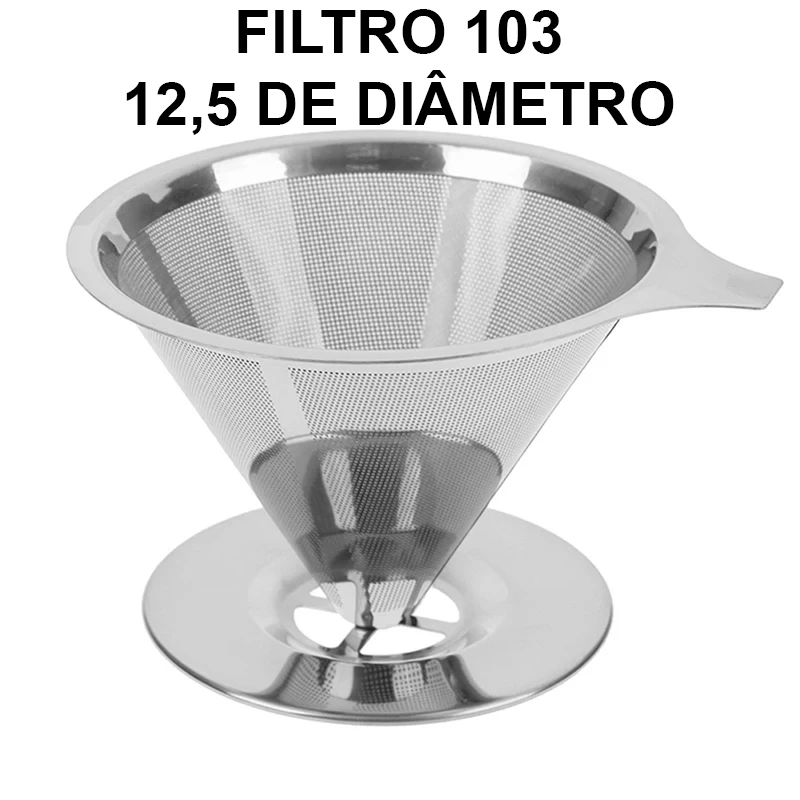 Coador Filtro de Café Inox Com Suporte 102/103/104 Grande Reutilizável Ecológico Sem Uso de Papel 304 - WYL