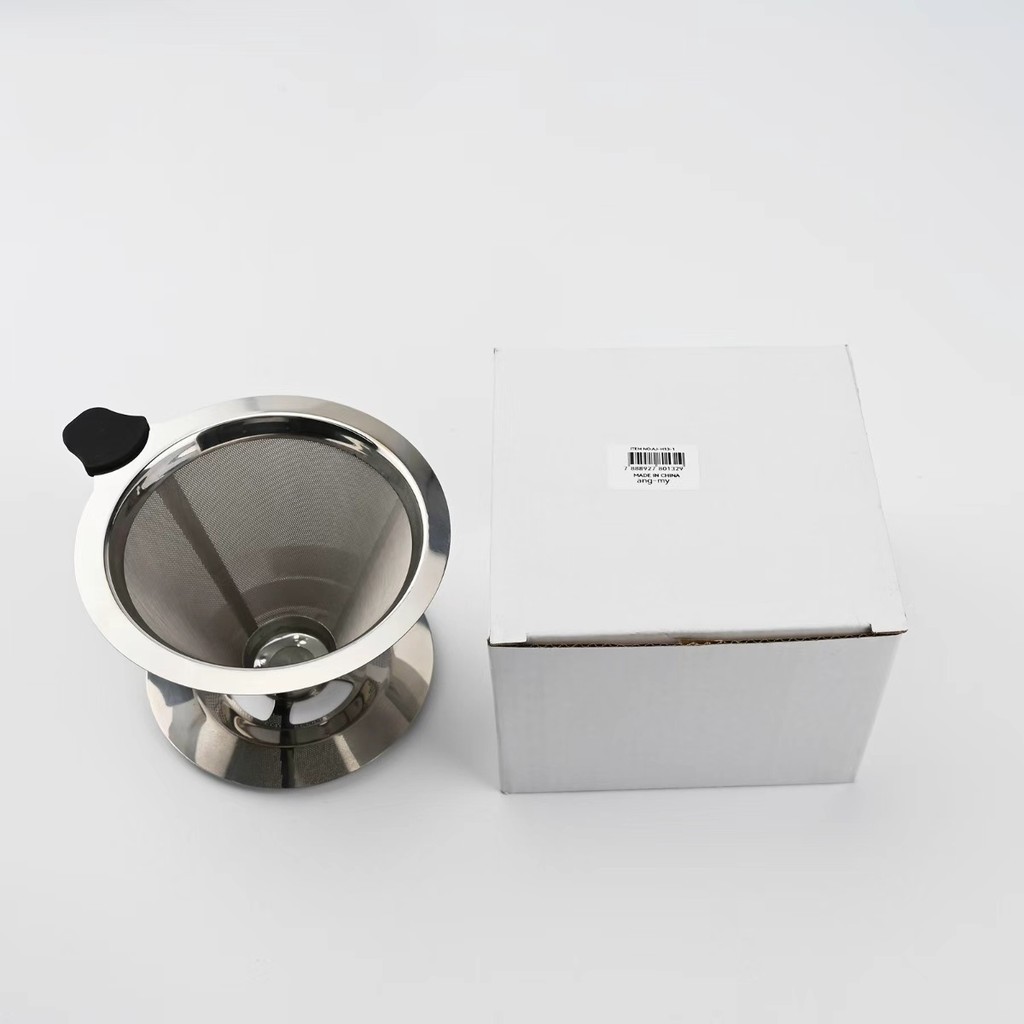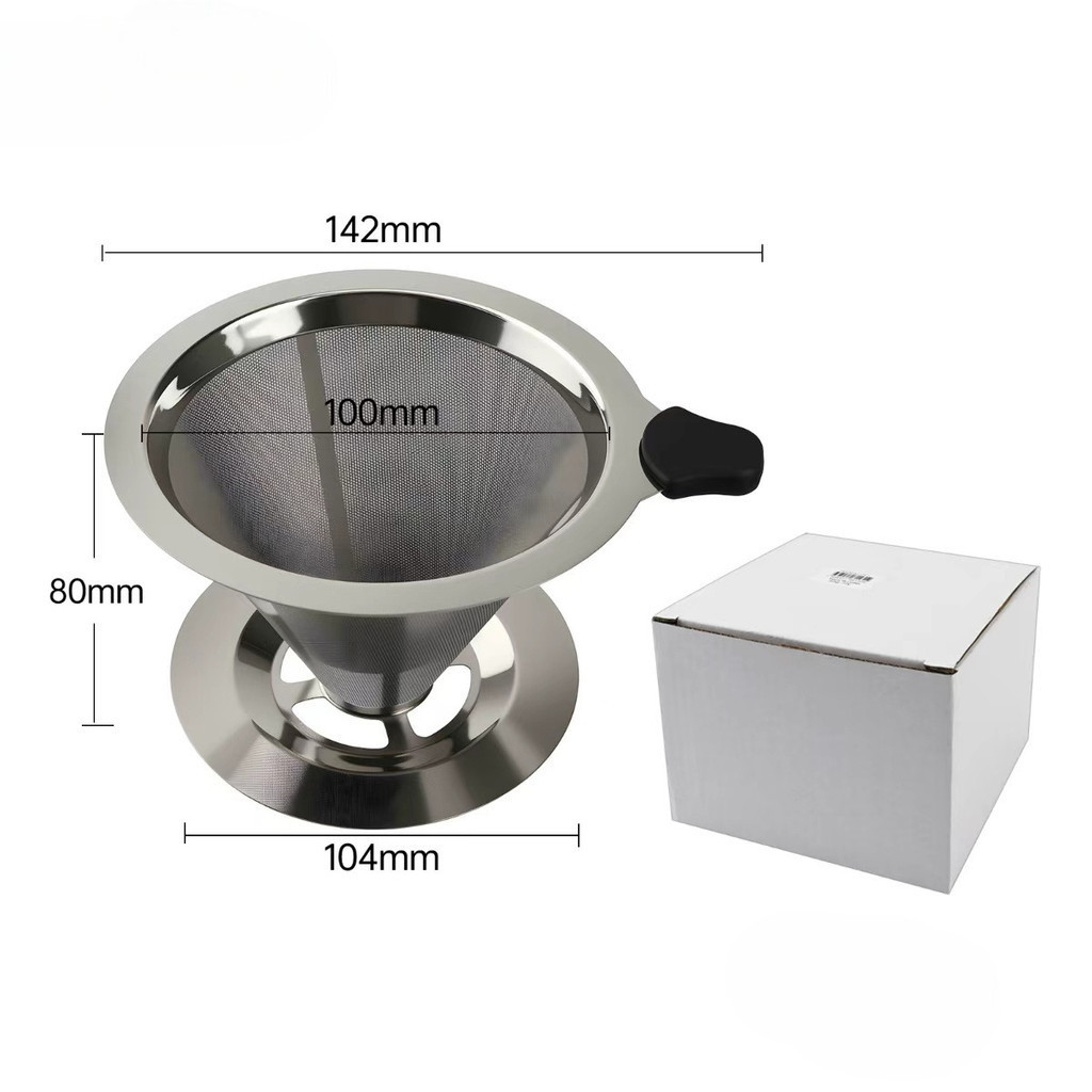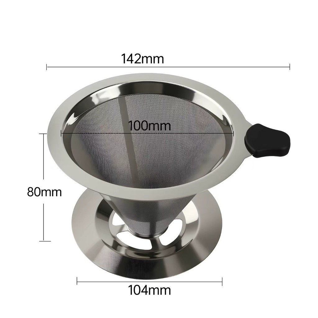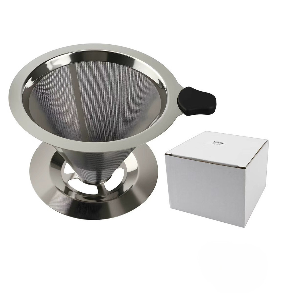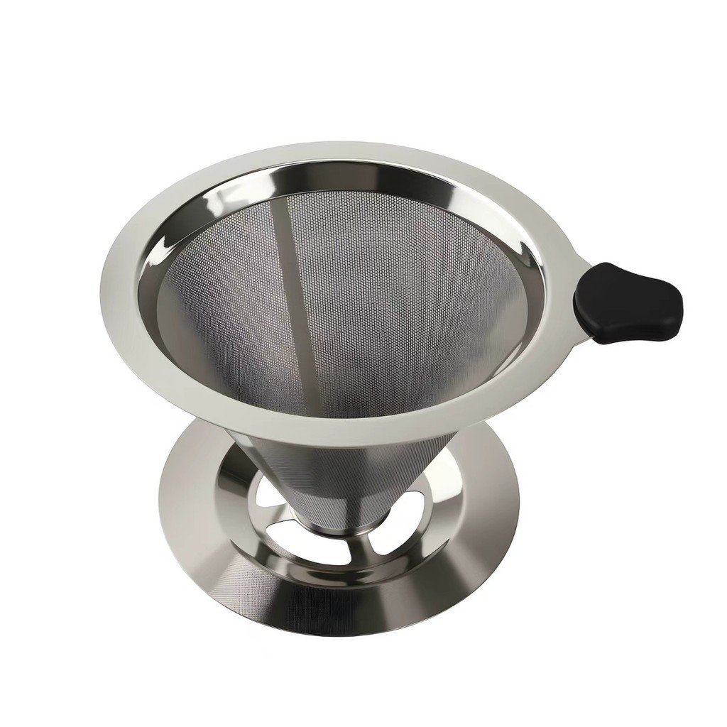Coador de Café Inox Reutilizável Tipo V60 Filtro Permanente Malha Fina com Base marisa