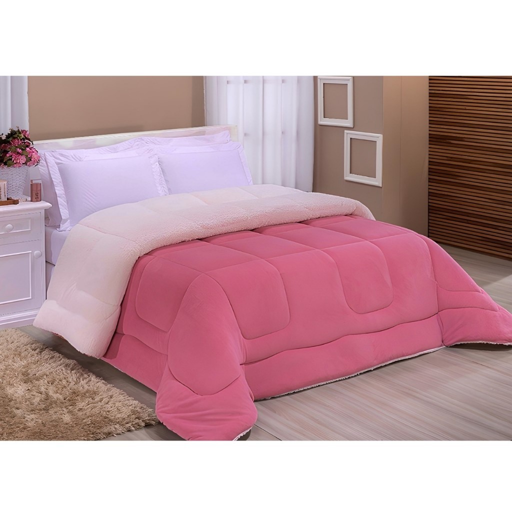Coberdrom Casal Queen Sherpa Edredrom Pele de Carneiro 2,40m x 2,20m