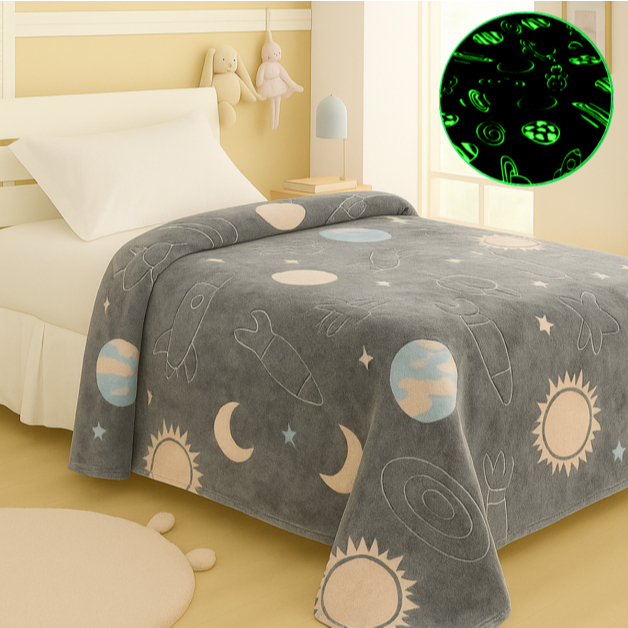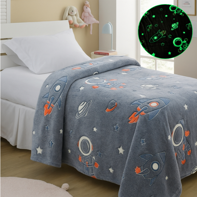 Cobertor Manta Brilha no Escuro Infantil 2,00x1,50 Mt Coberta Solteiro fluorescente