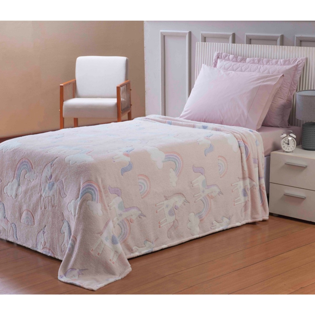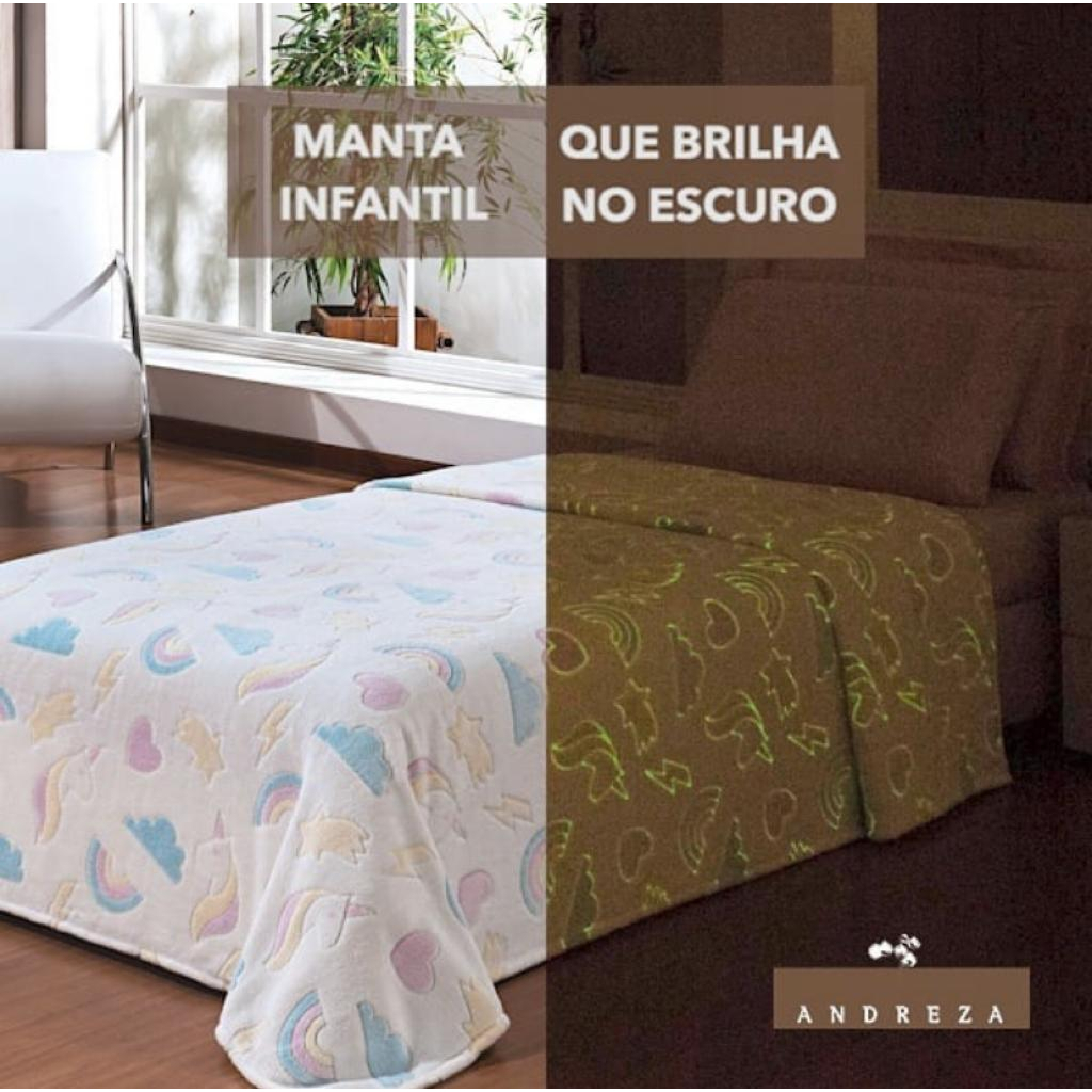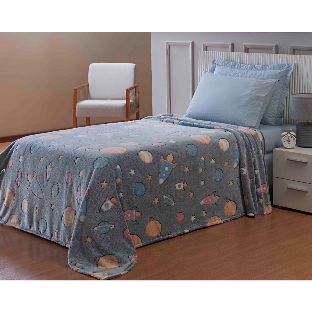 Cobertor Manta Solteiro Infantil Brilha No Escuro - Unicórnio | Dinossauros | Bola | Planeta - 240Grs