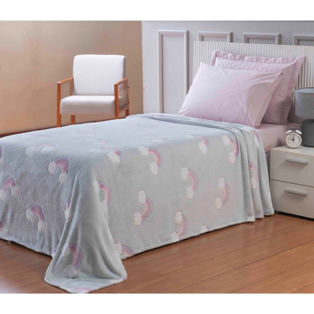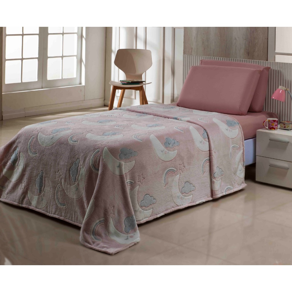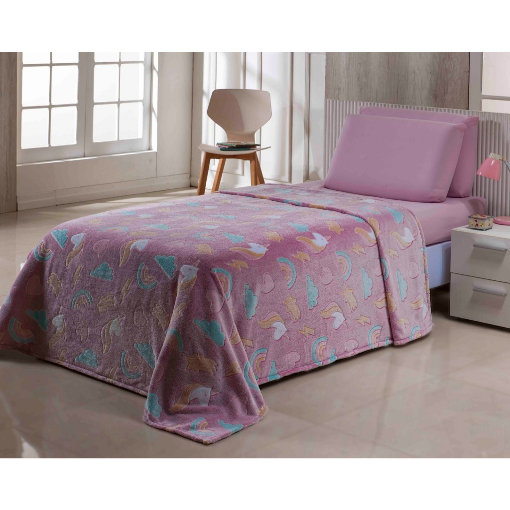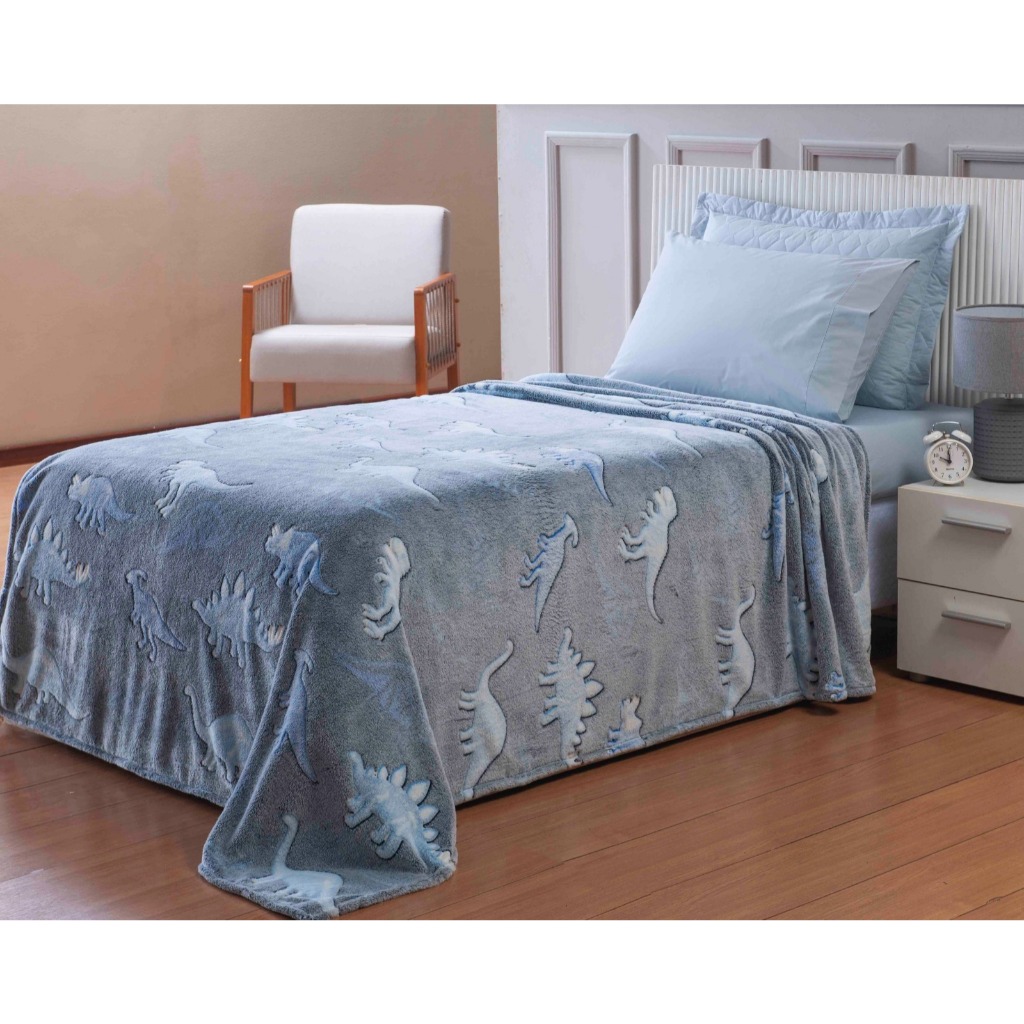Cobertor Manta Solteiro Infantil Brilha No Escuro - Unicórnio | Dinossauros | Bola | Planeta - 240Grs