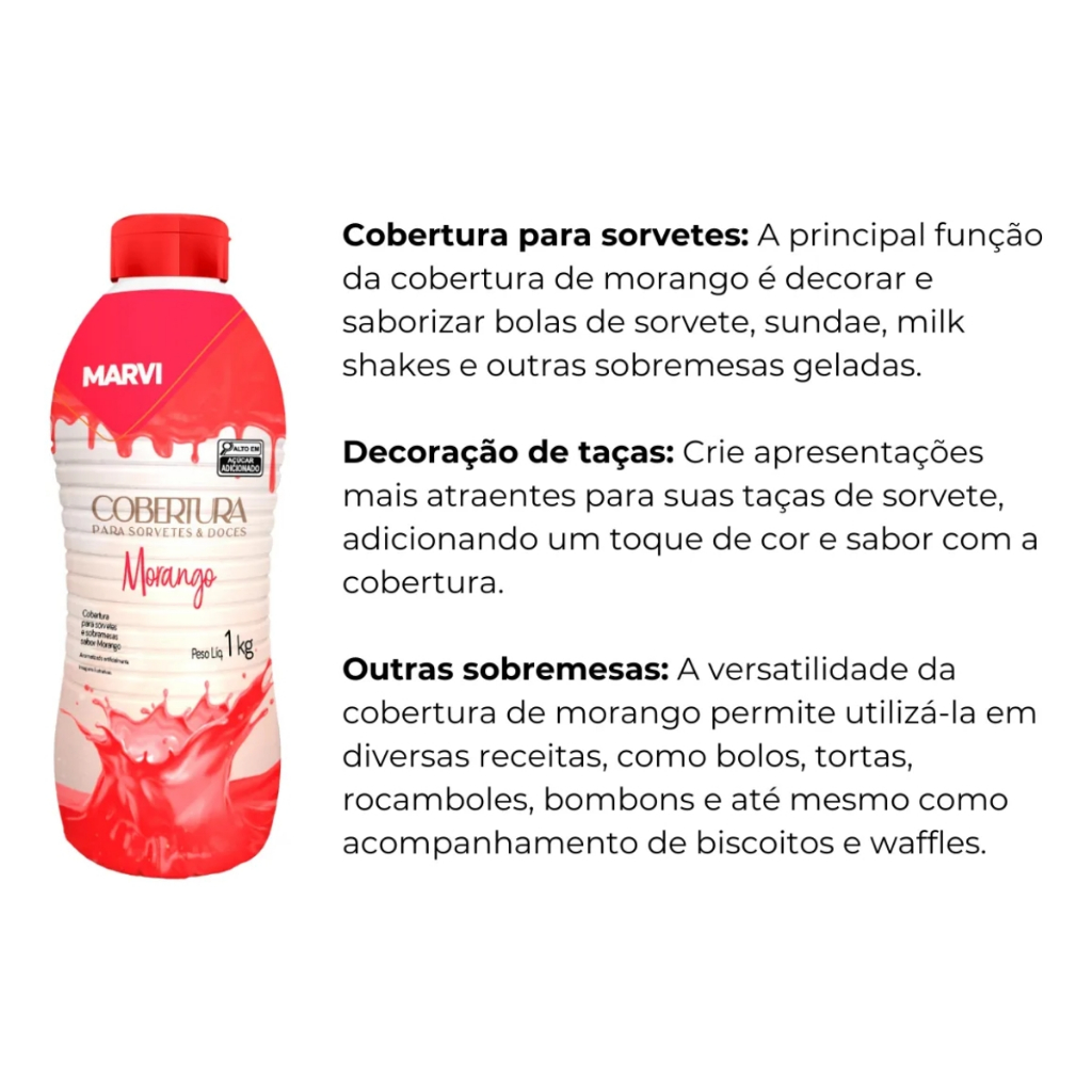 Cobertura Calda para Sorvete Sabor Morango 1,01kg Marvi