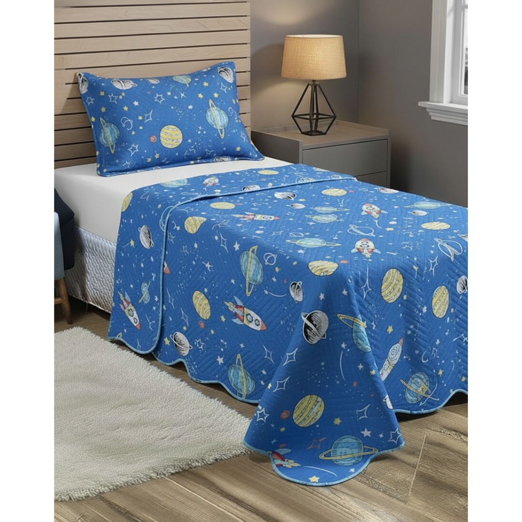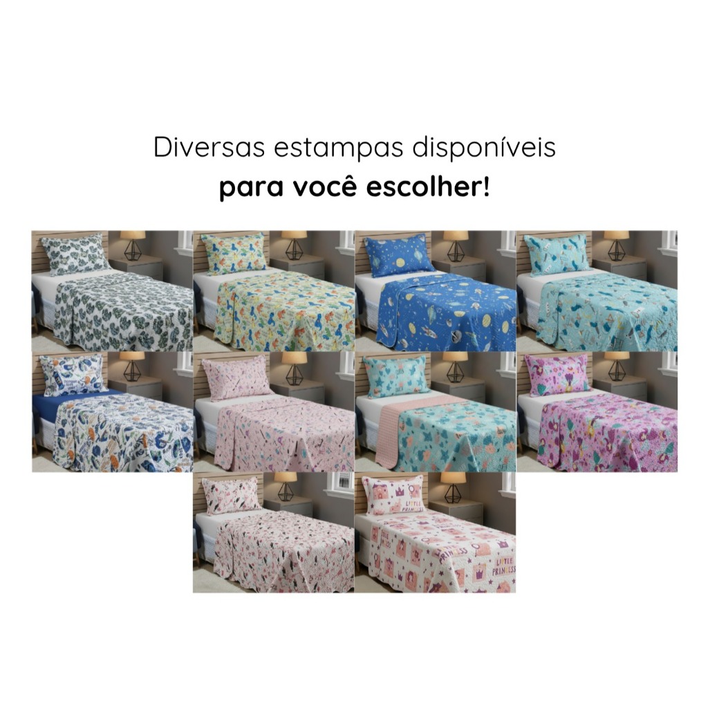 Cobre Leito Solteiro 200 Fios Estampado Teen Kids Dupla Face