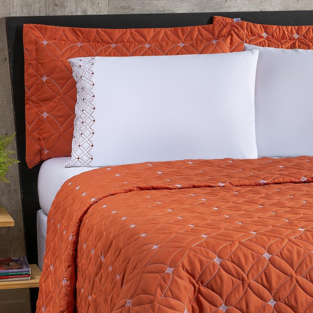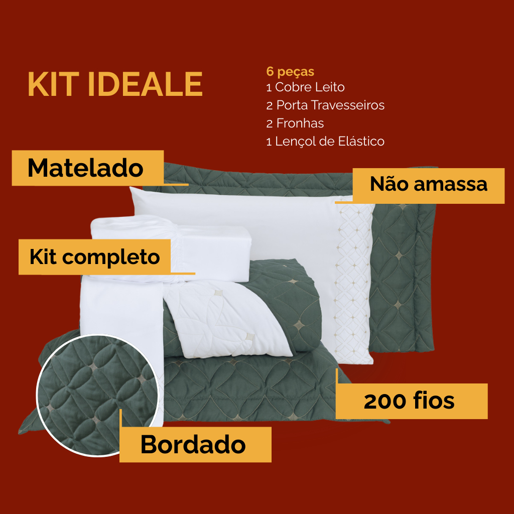 Cobre Leito Super King 6 Peças com Lençol Percal 200 Fios Bordado Ideale