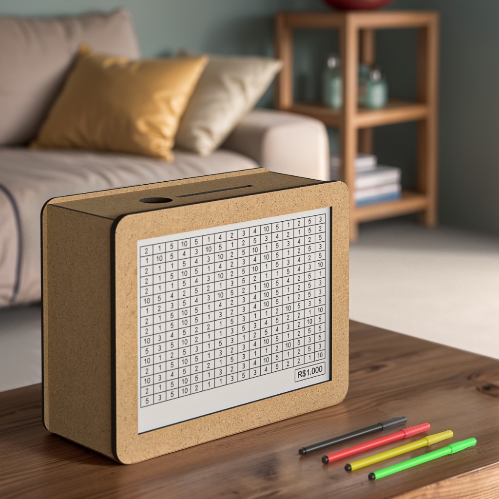 Cofre Desafio Caixa Dinheiro De Madeira Método Japonês 1000 5000 10000 Mdf