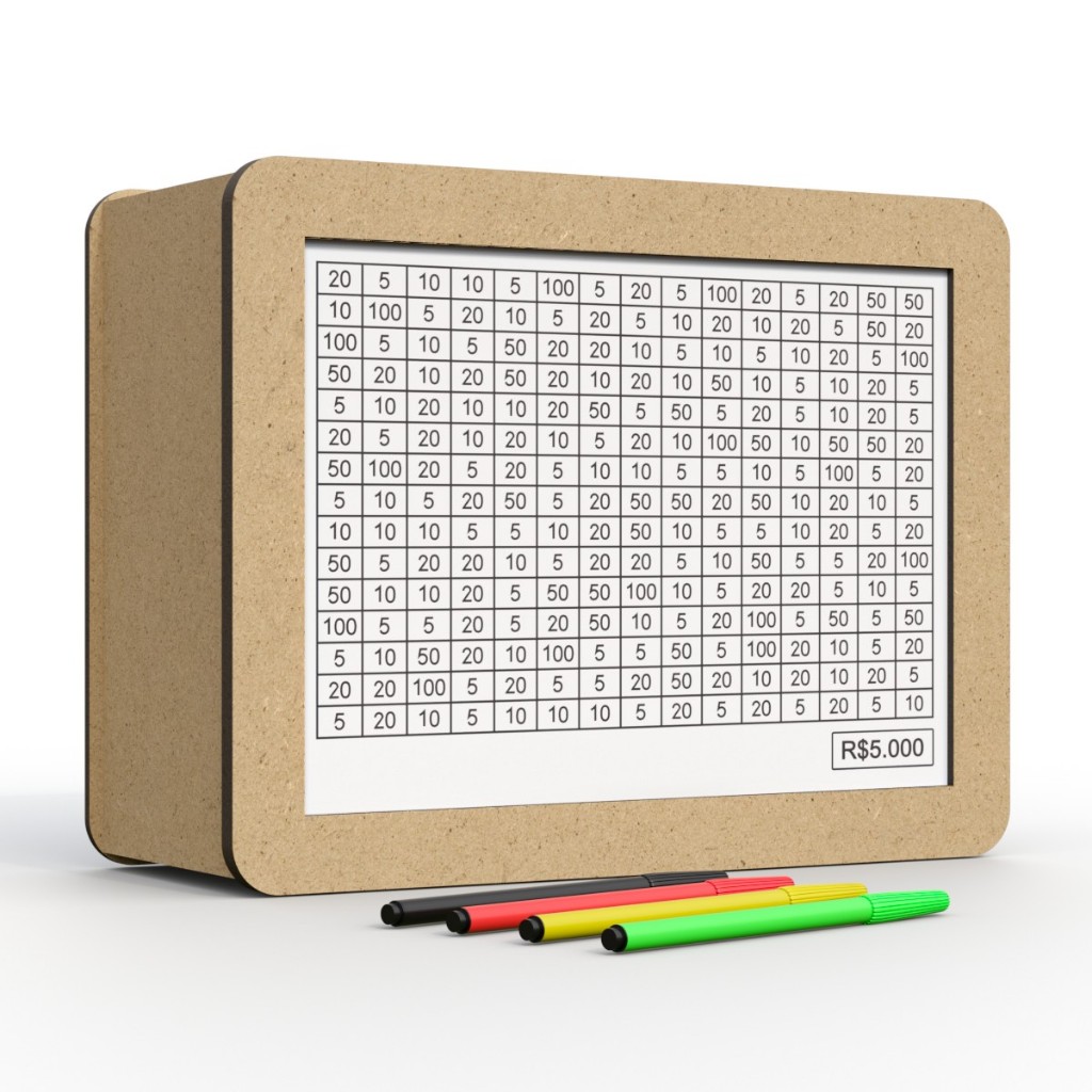 Cofre Desafio R$10mil Dinheiro Caixa de Madeira Woodbox Moedas Páscoa Coelho