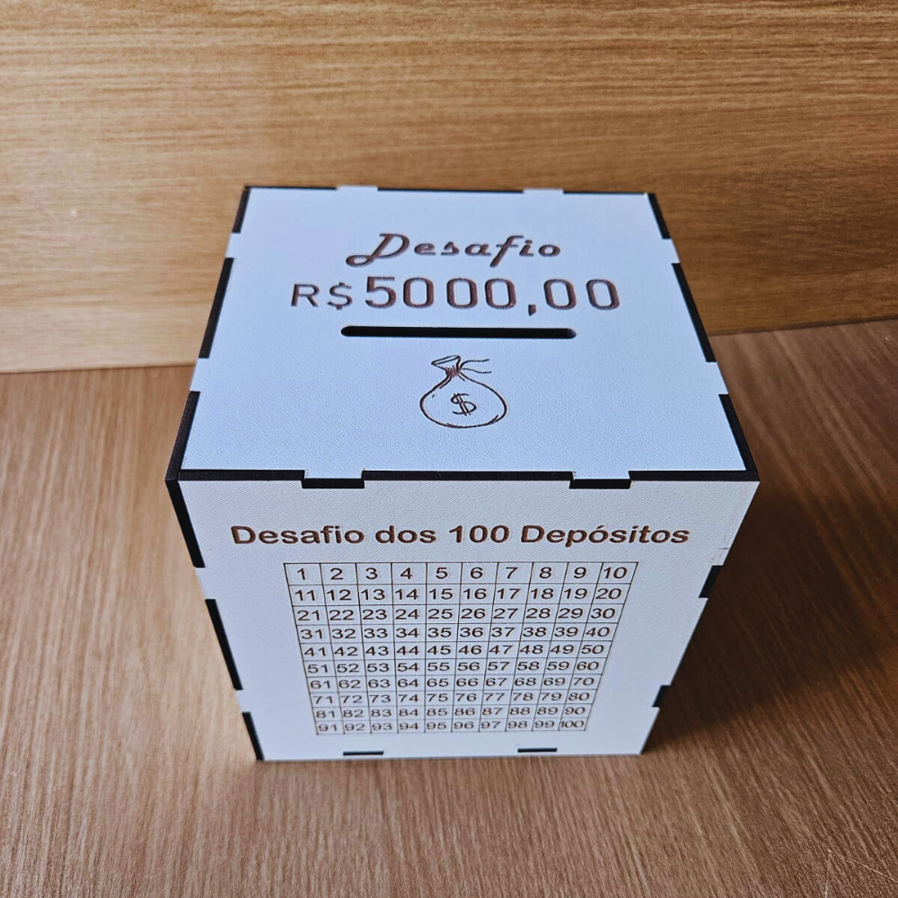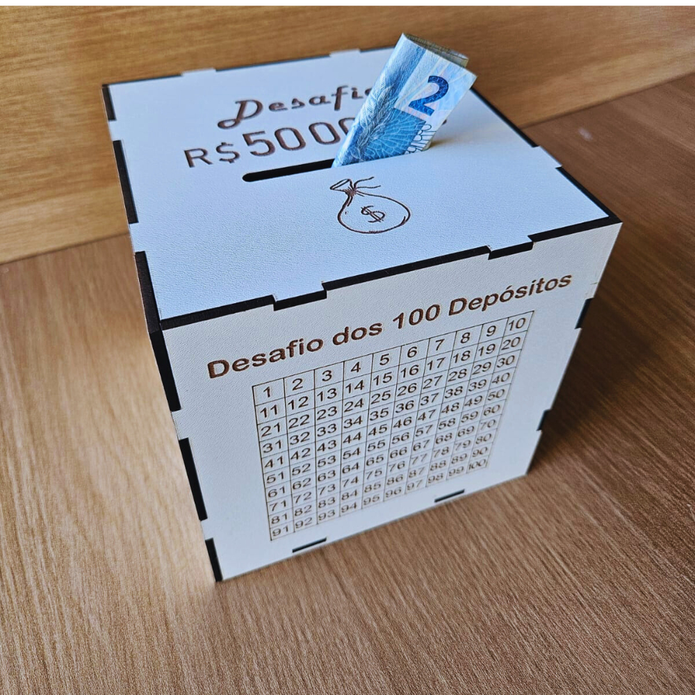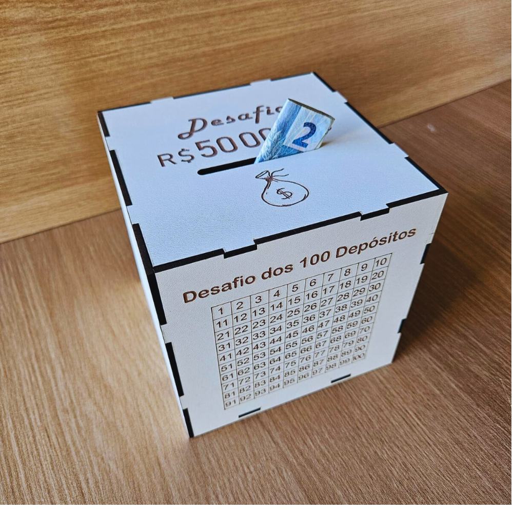 Cofre Desafios dos 100 Depósitos 1mil 5 Mil 10 Mil Escolha Sua MetaCaixa Dinheiro de Madeira Japonês