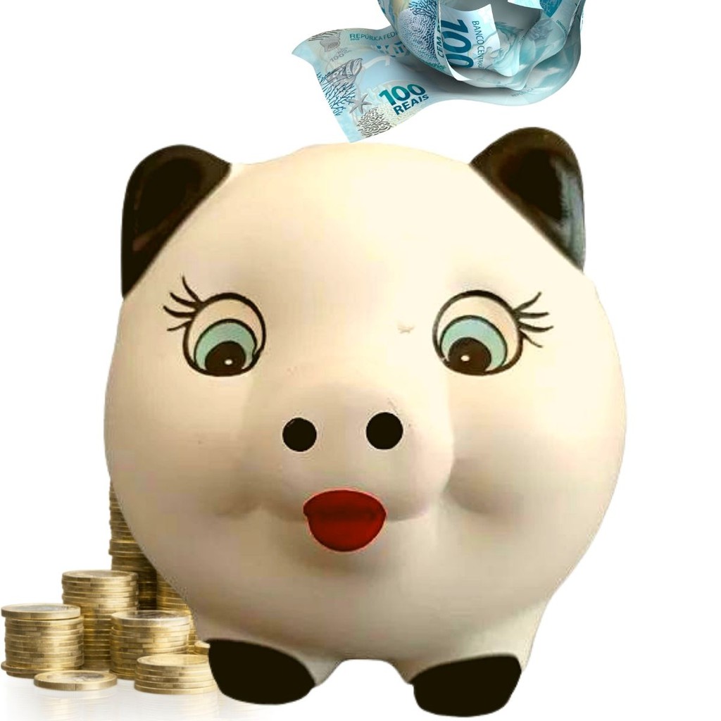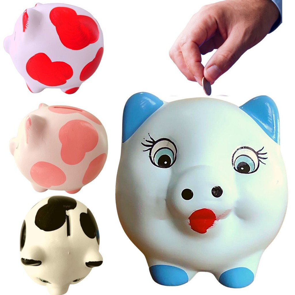 Cofrinho Porquinho Moedas Decorado Cofrinho Porco Bola Gesso Cofre p/ quebrar -Cores Diversas