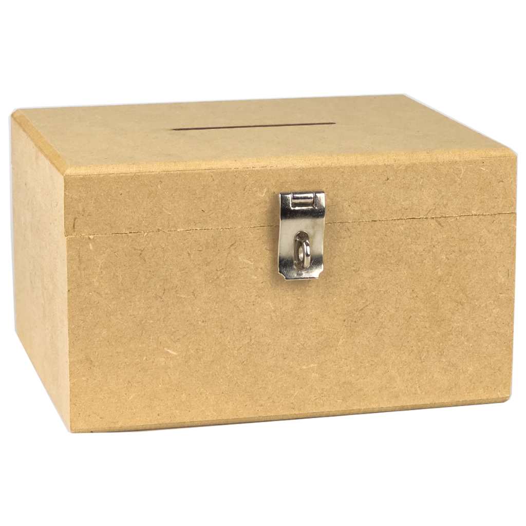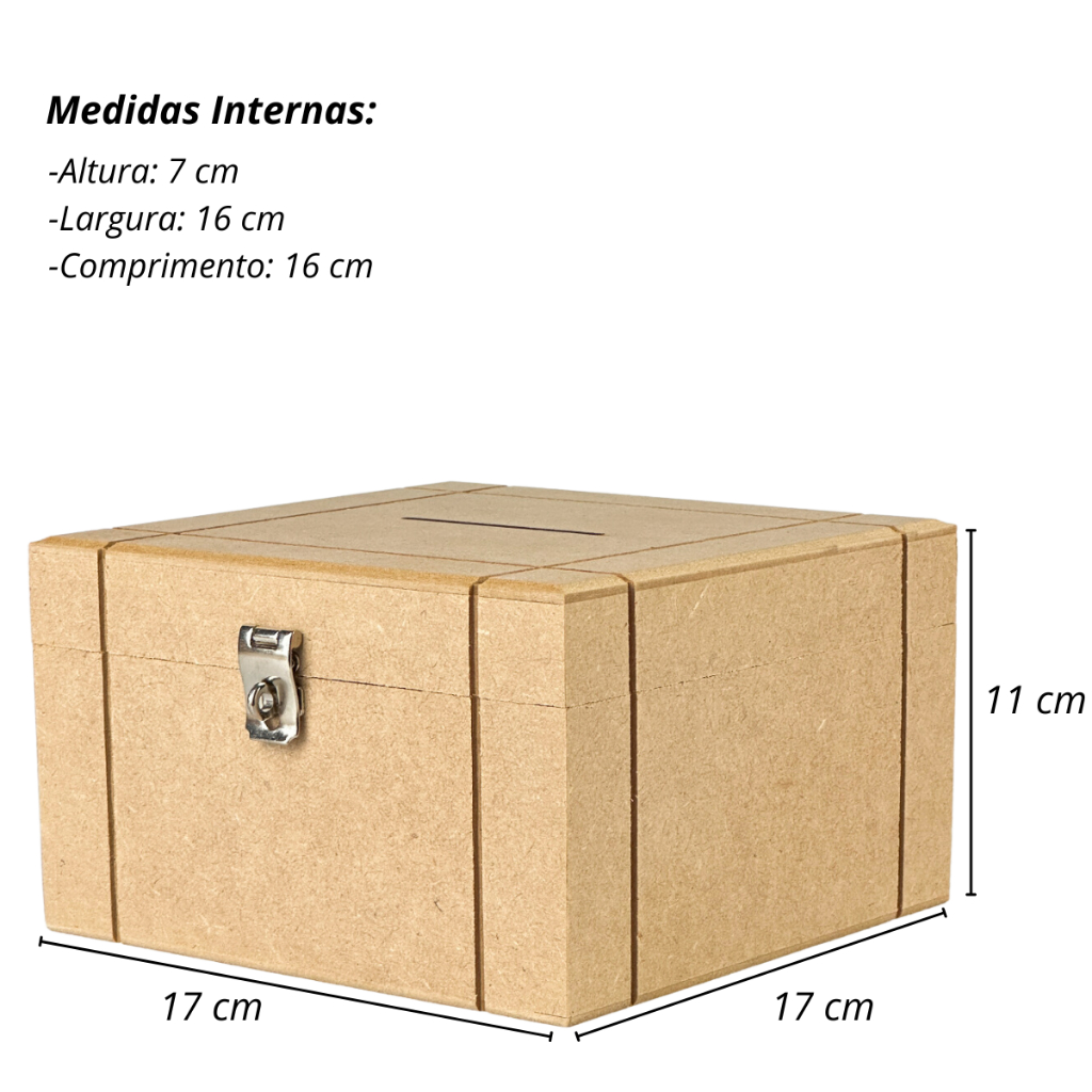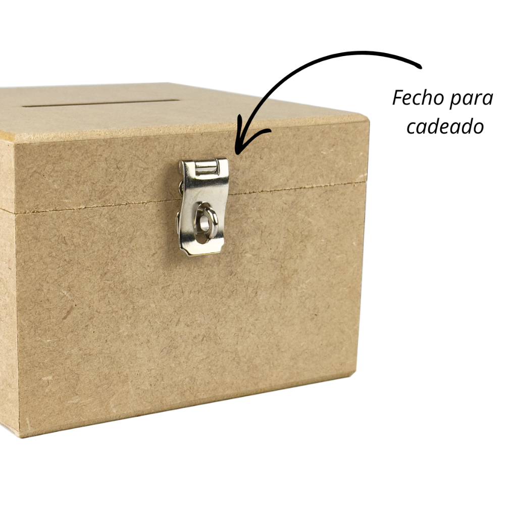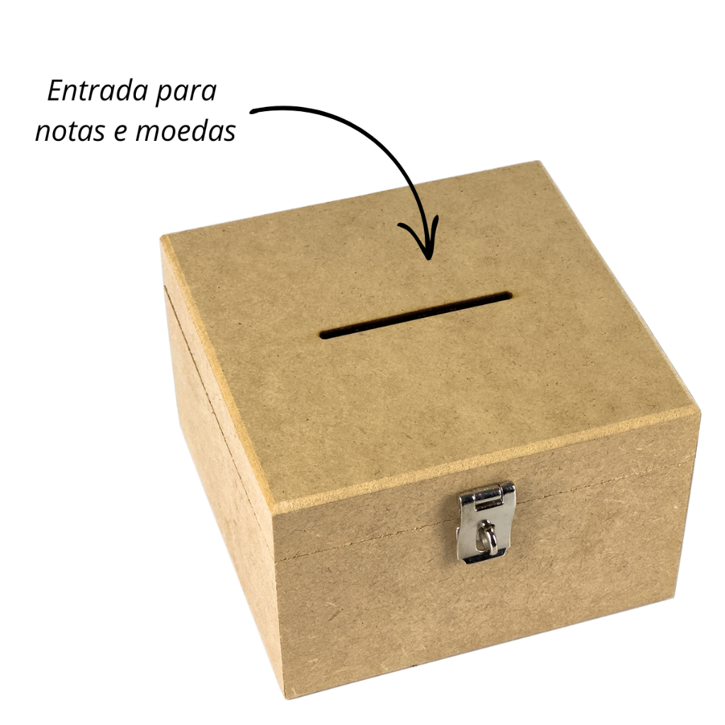 Cofrinho de Madeira Em Mdf Cofre Com Furo Para Notas Moedas e Fecho Para Cadeado