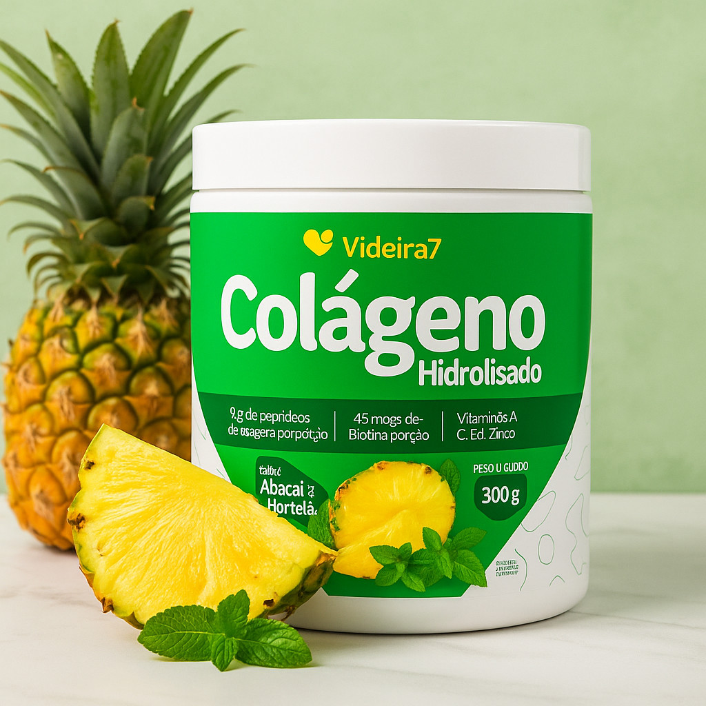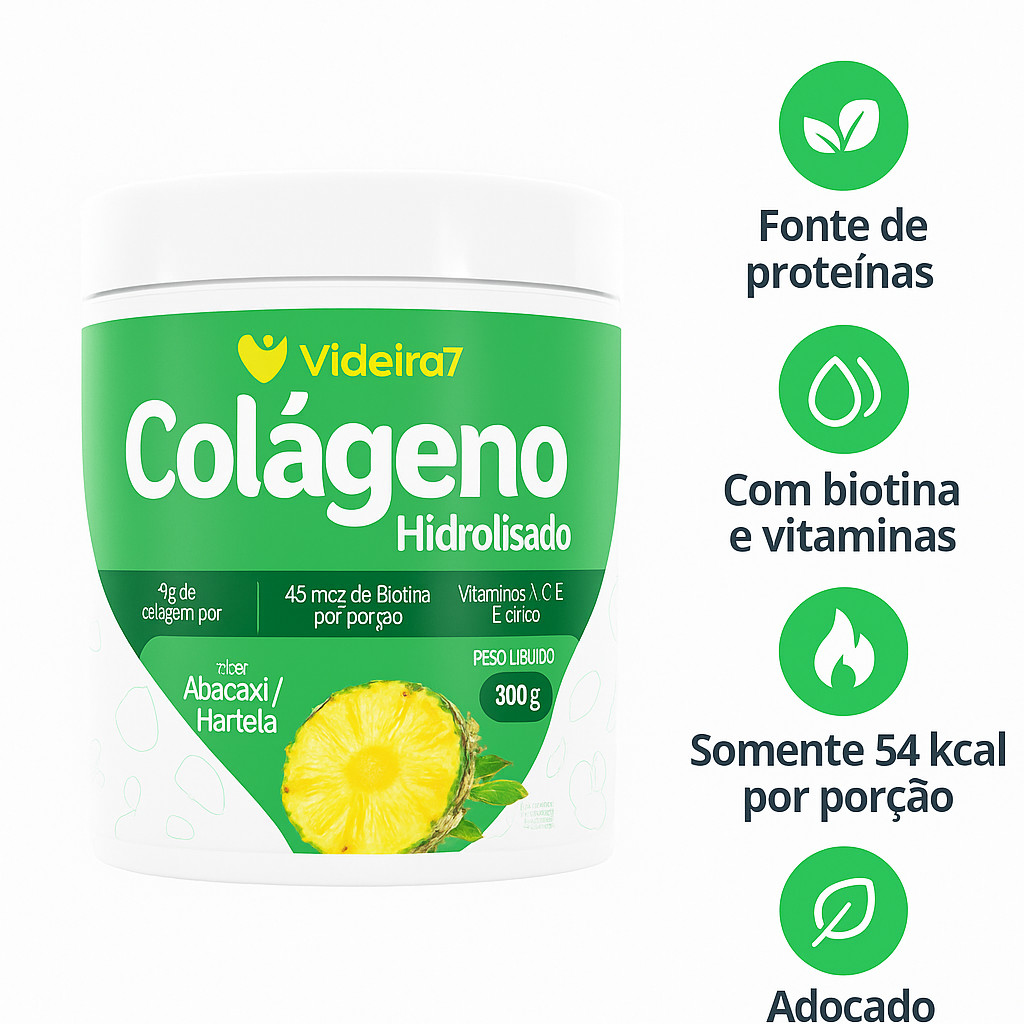 Colágeno Hidrolisado com Vitaminas, Minerais e Biotina – Sabor Abacaxi com Hortelã | 300g
