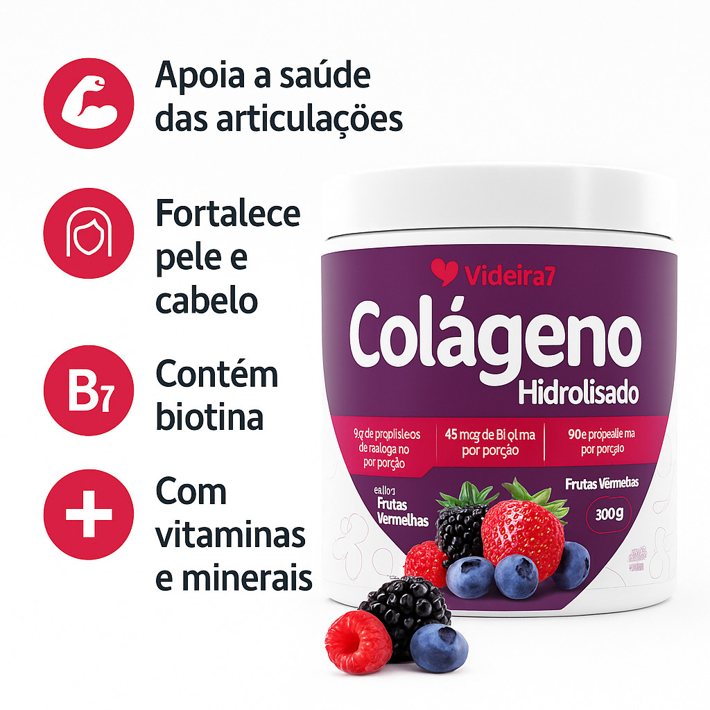 Colágeno Hidrolisado com Vitaminas e Biotina – Sabor Frutas Vermelhas | 300g