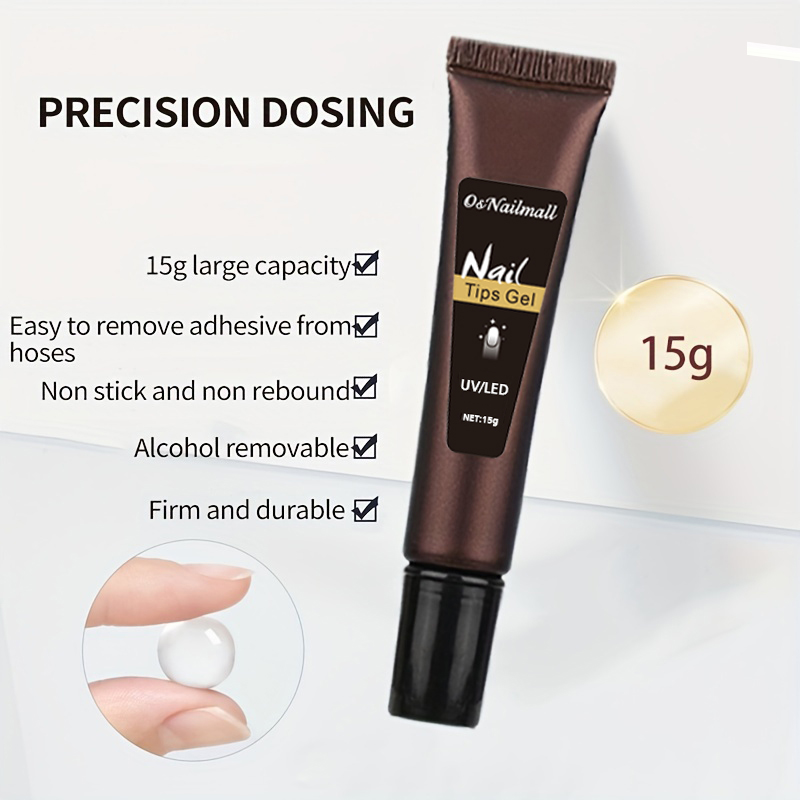 Cola Cristalina Para Nail Art 15g-Fórmula De Fixação Forte , Secagem Rápida E Vedação De Bordas Gel UV , Unhas Postiças