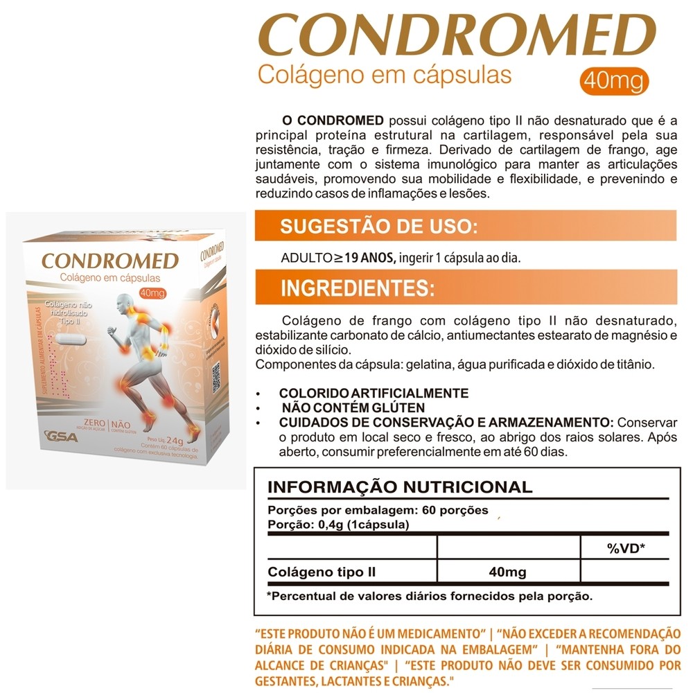 Colageno Tipo 2 - Condromed 40mg 60 Cápsulas = Condres