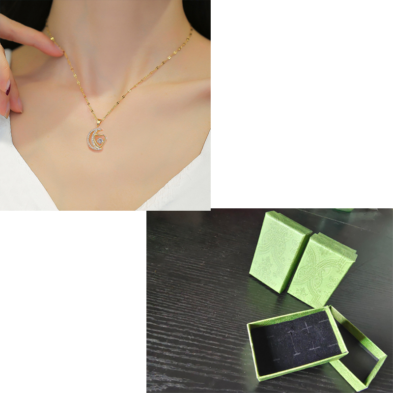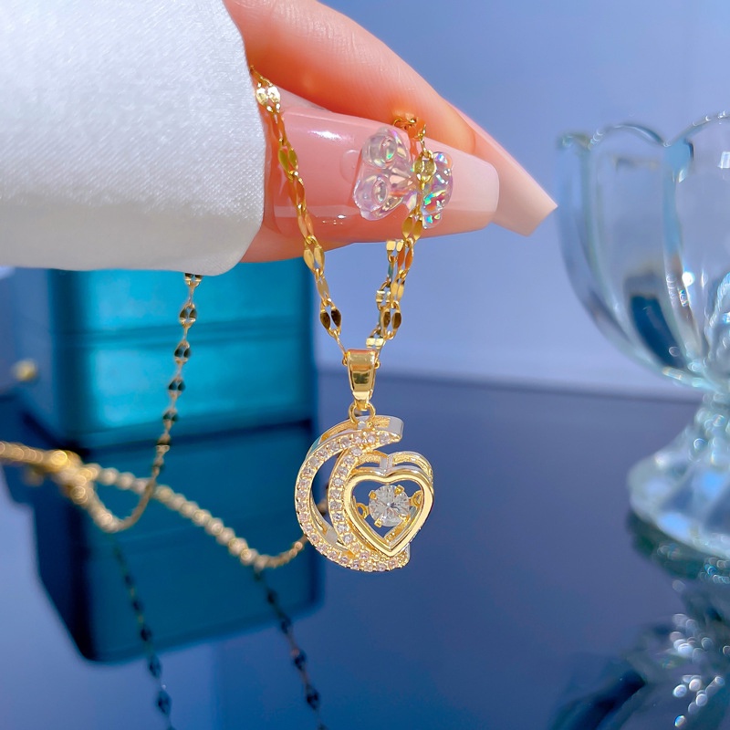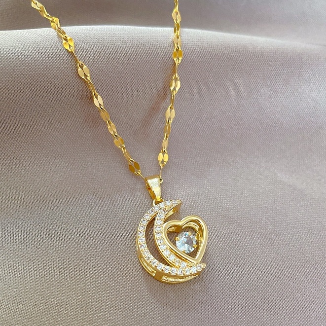 Colar Longo De Coração De Lua De Aço De Titânio Para Mulheres Design Delicado Banhado A Ouro Joias Femininas