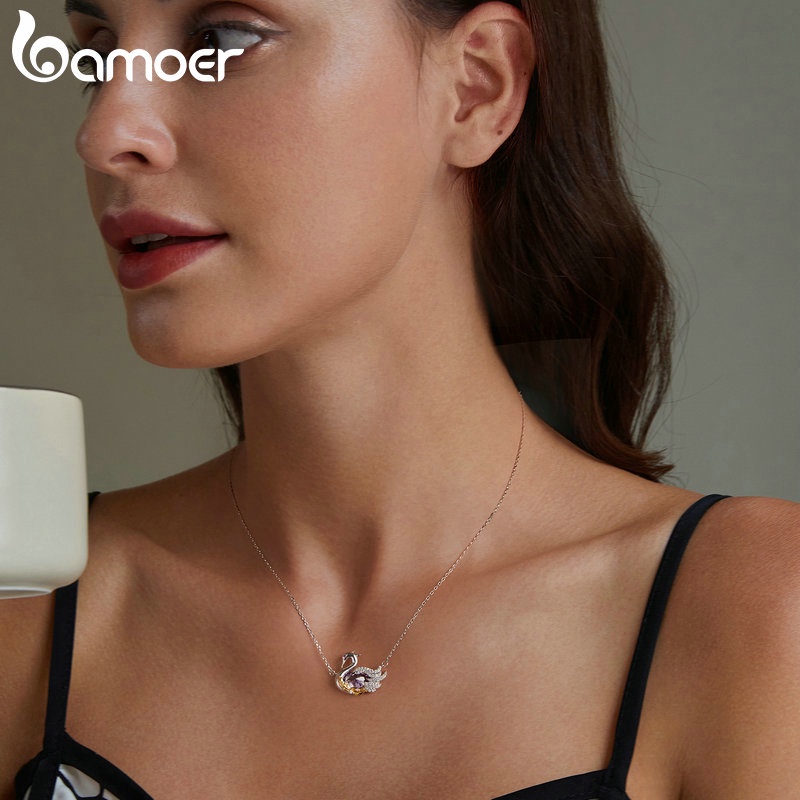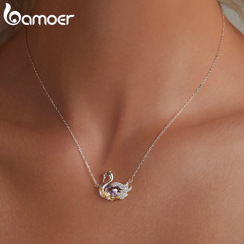 Colar De Fita Bamoer 925 Sterling Cisne Jóias Para Mulheres