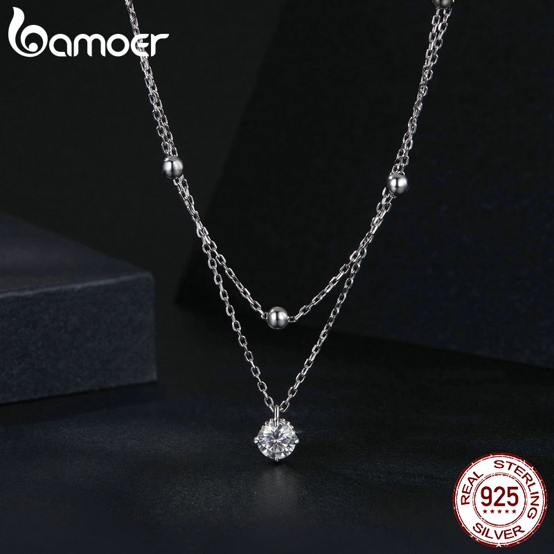 Colar De Fita Bamoer 925 Sterling Moissanita Dupla Camada Jóias Presentes Para Mulheres
