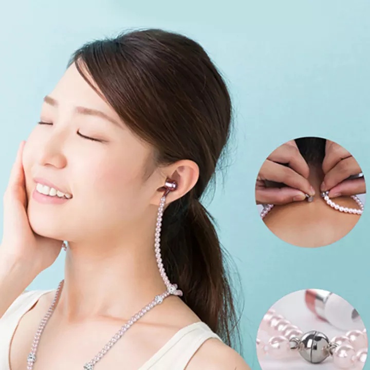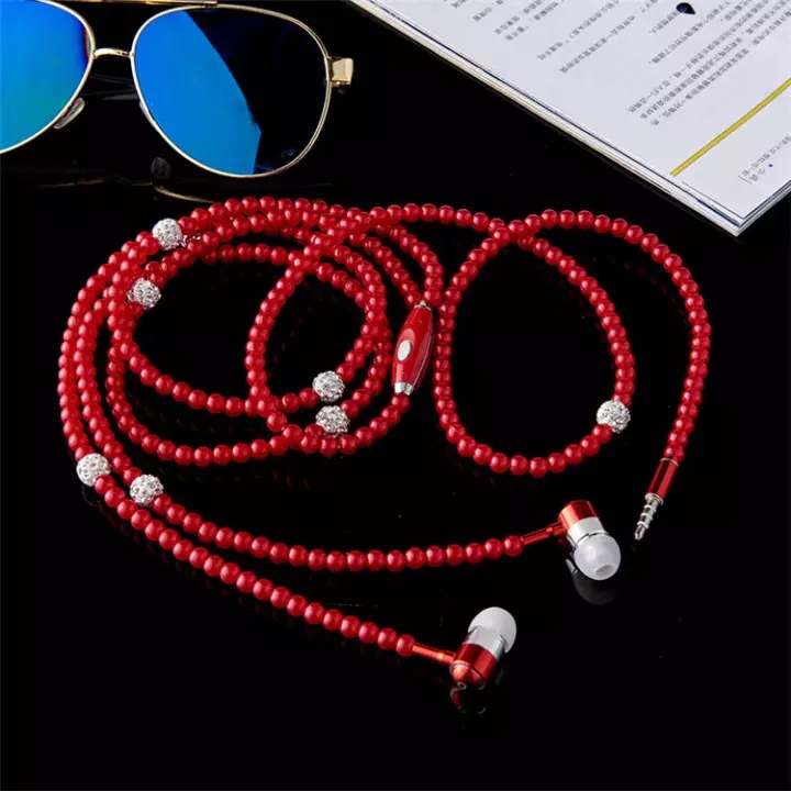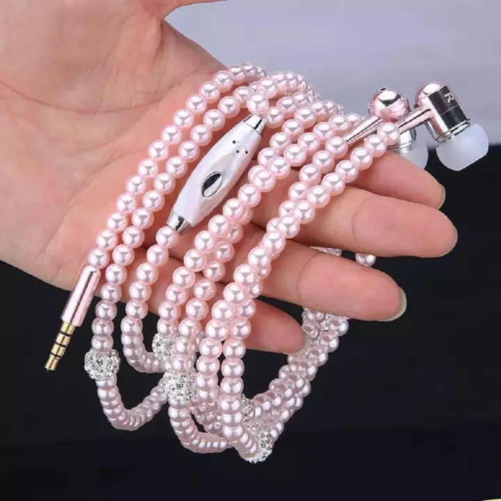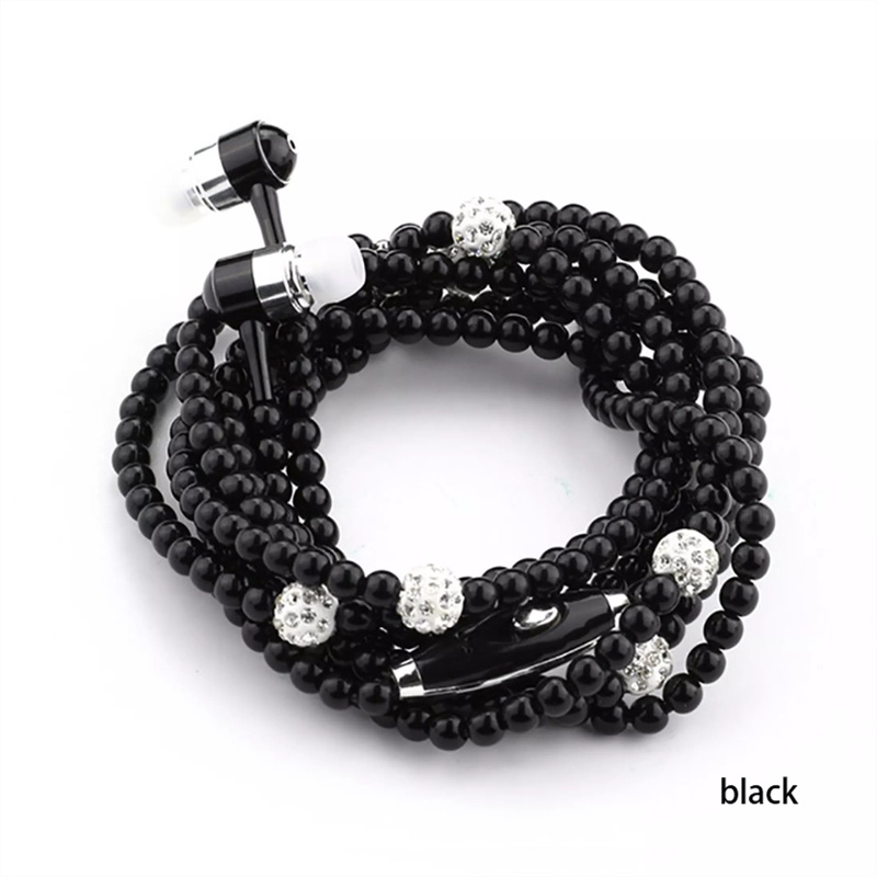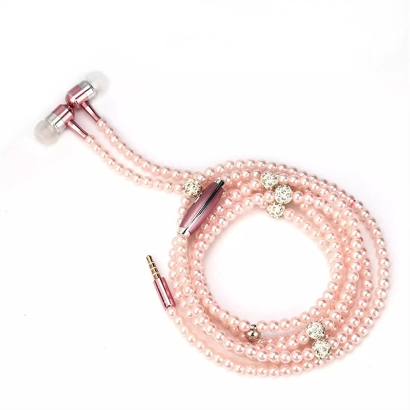 Colar De Pérolas Com Strass Intra-Auriculares Microfone Para Samsung/Xiaomi/Oppo/Festa De Aniversário