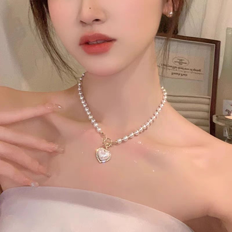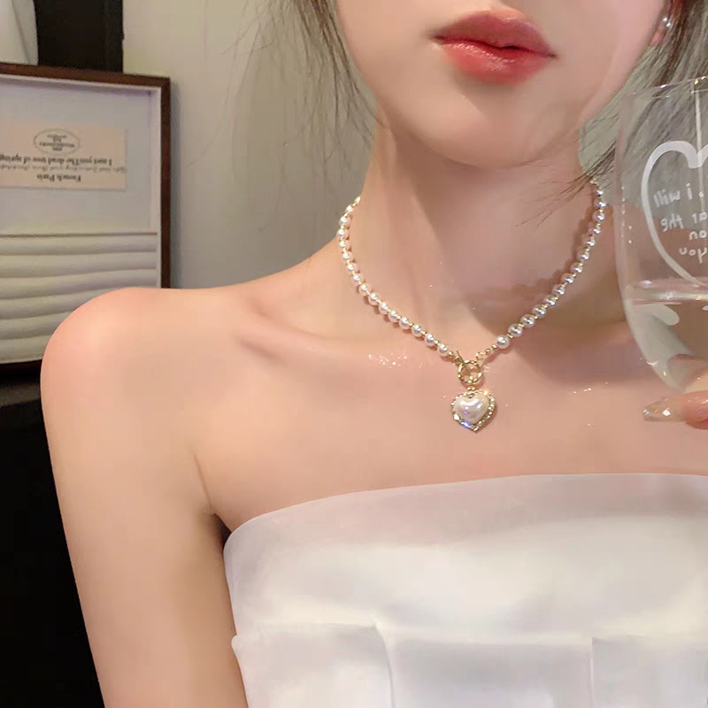 Colar De Pérolas Feminino Coração Design Moderno Corrente De Clavícula Joias Elegantes