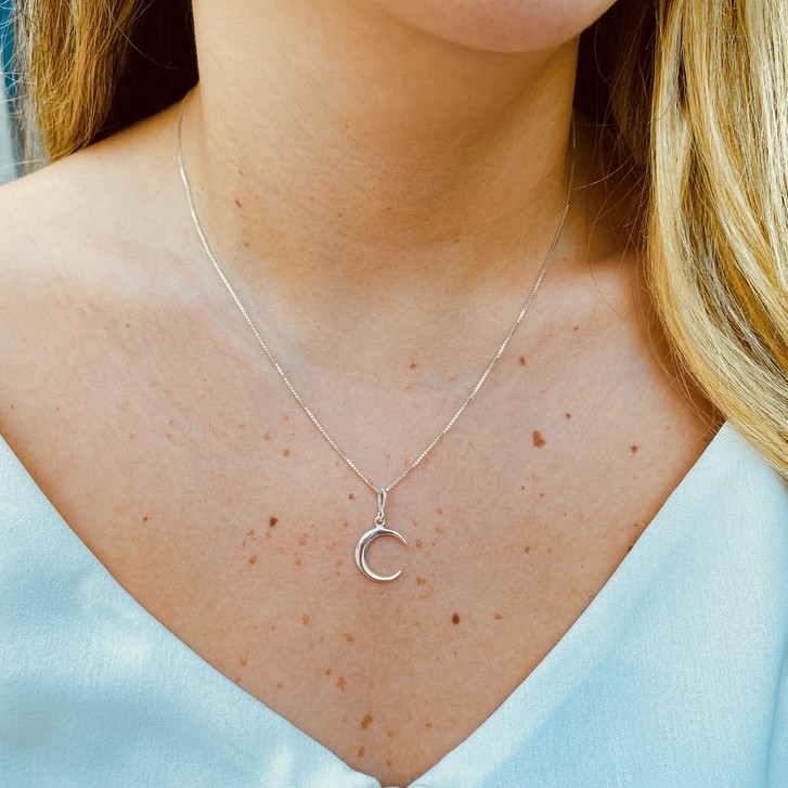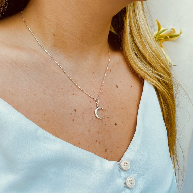 Colar De Prata 925 Com Pingente Lua Corrente Veneziana 45cm Prata Legítima