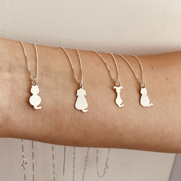 Colar De Prata 925 Legítima Minimalista Cachorro Gato Pet
