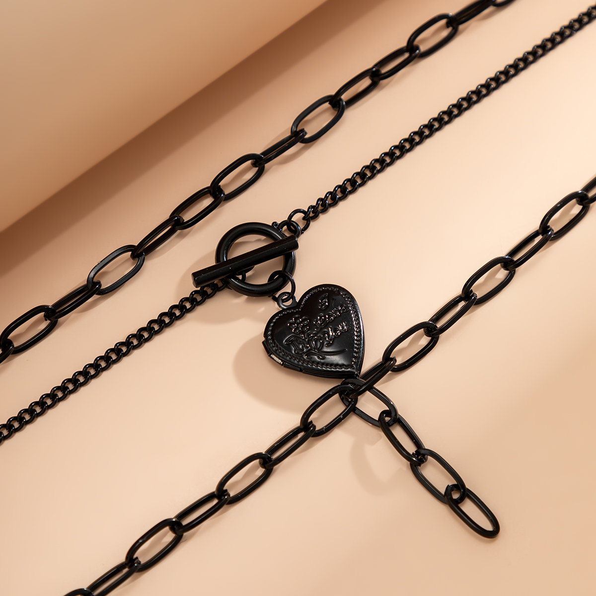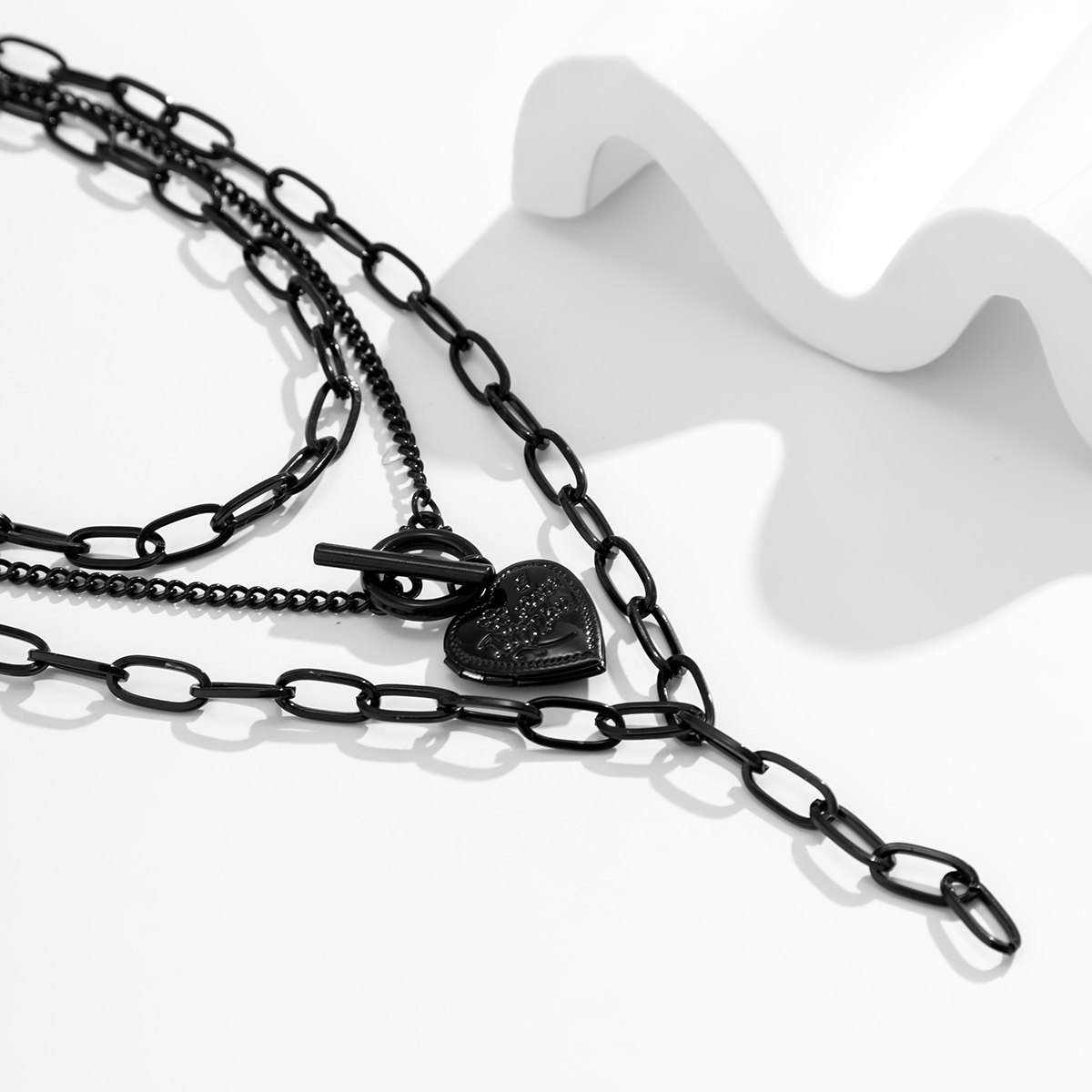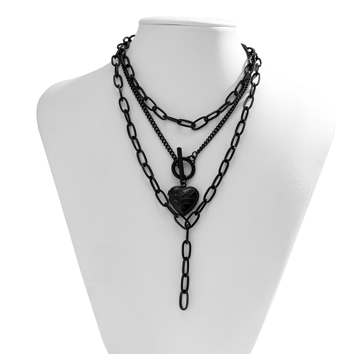 Colar Gargantilha Com Pingente De Coração Punk Para Mulheres – Joia Robusta Gótica Corrente Preta Roupas Diárias/Festas