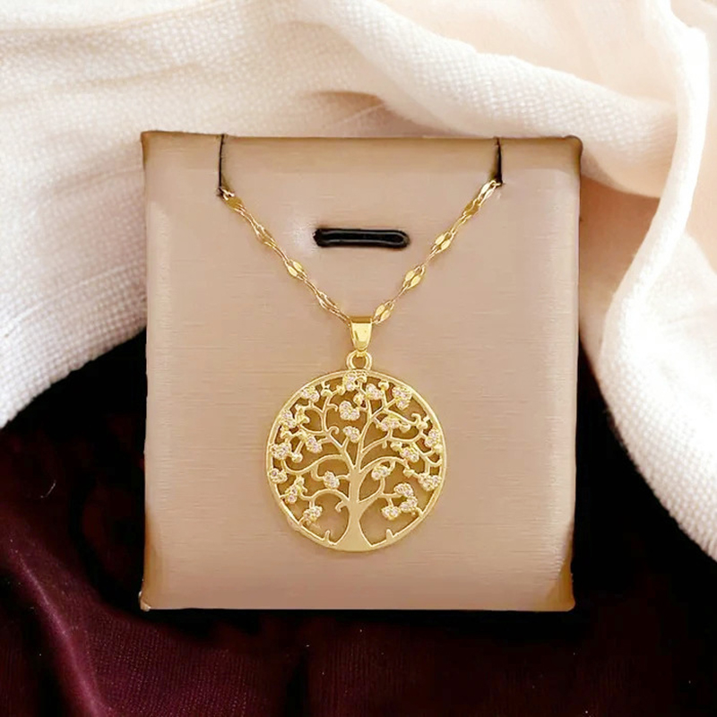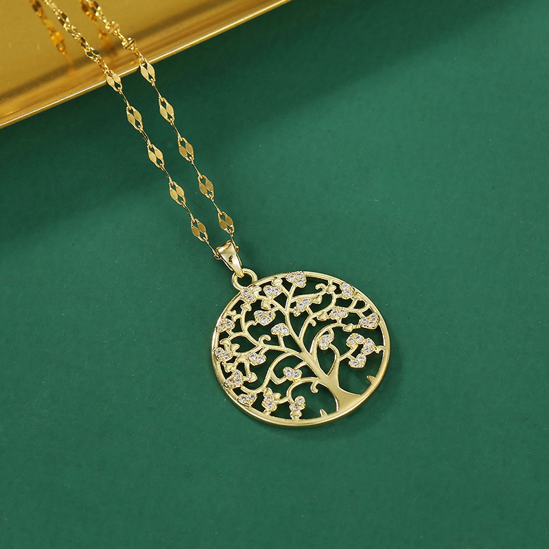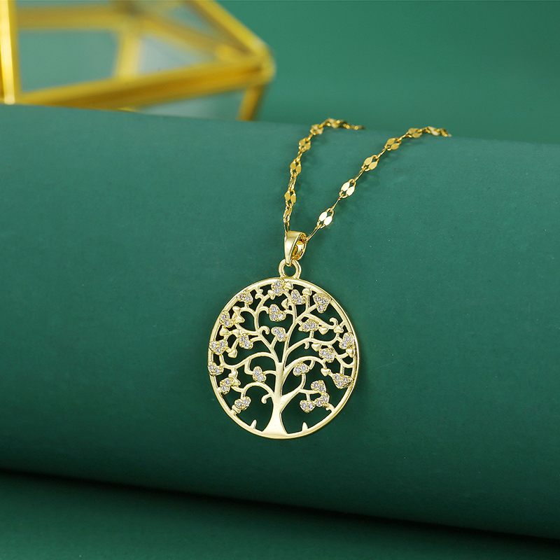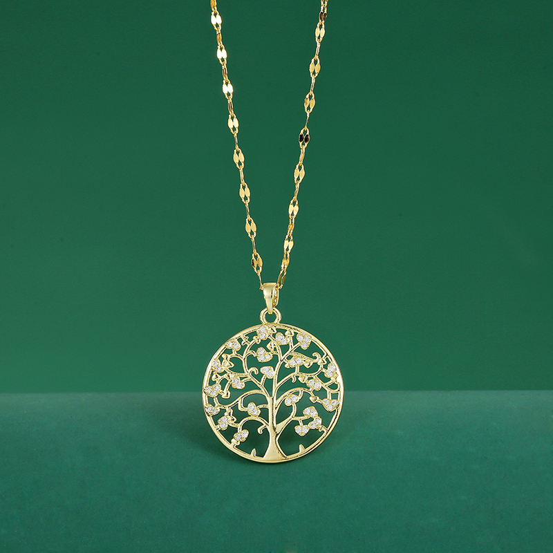 Colar Golden Tree of Life Luxuoso Corrente De Clavícula Com Diamantes Completos Em Estilo Japonês-Coreano Presente Para