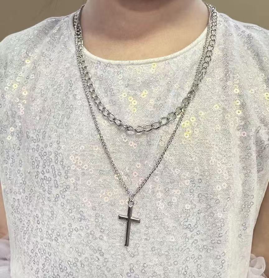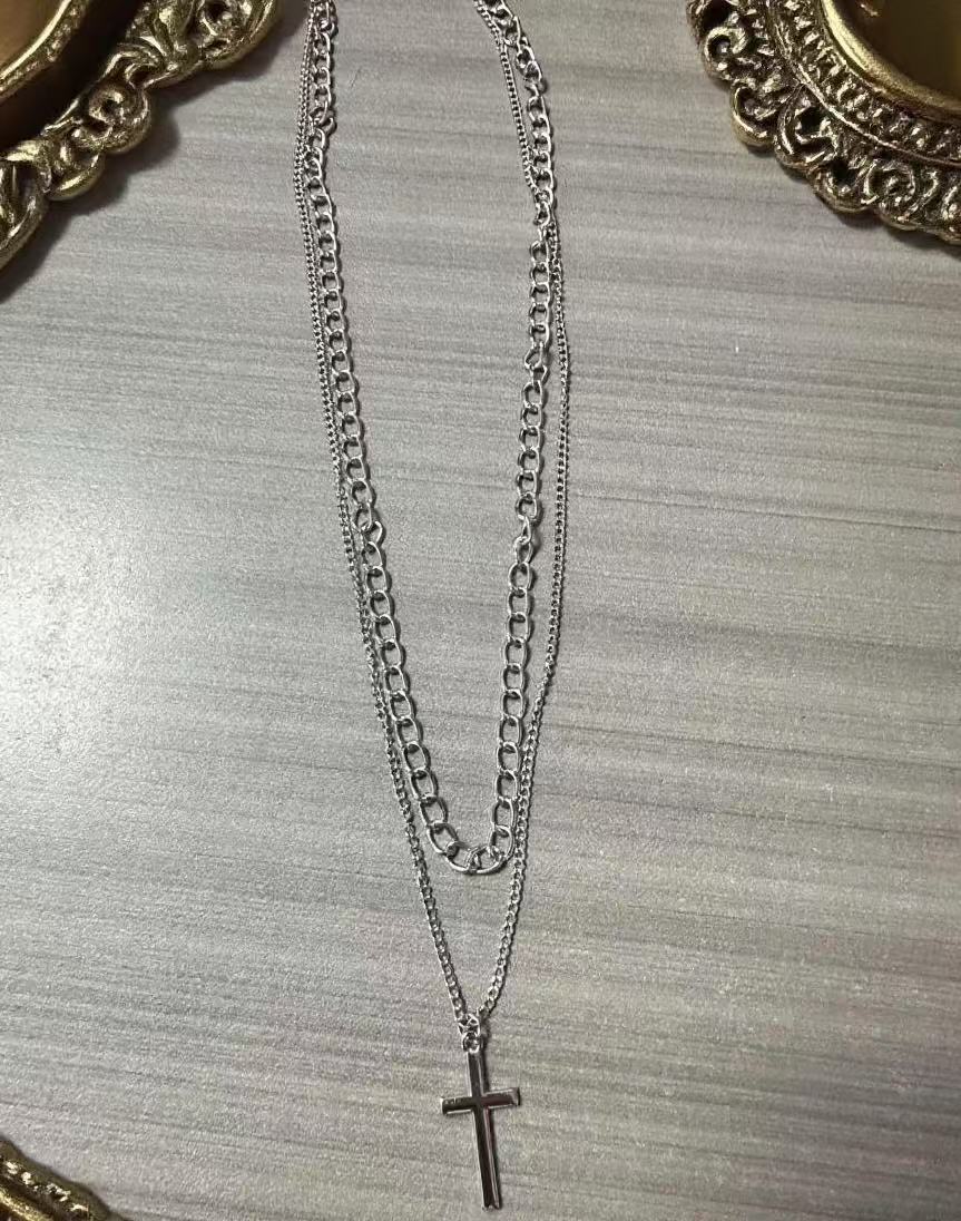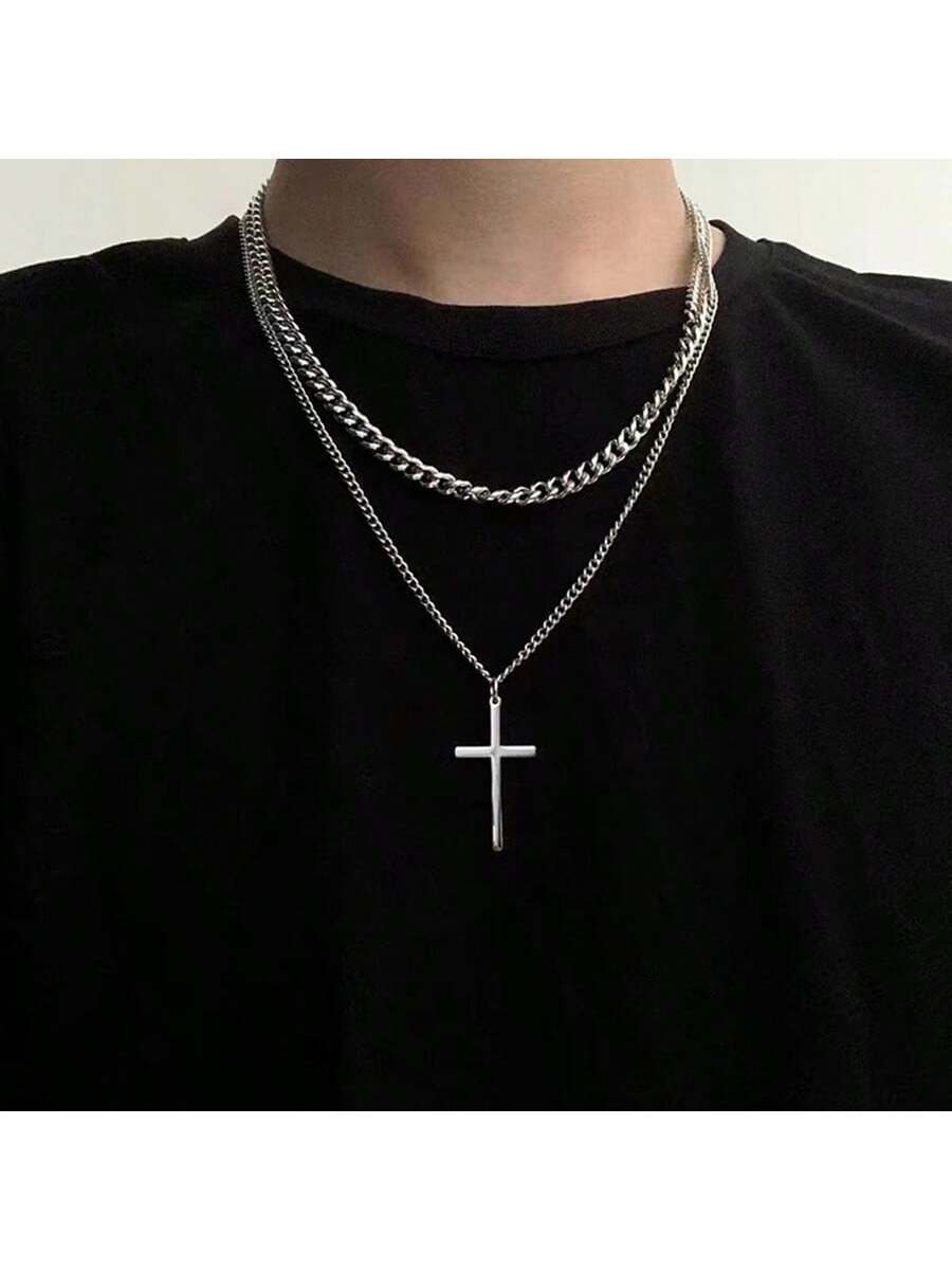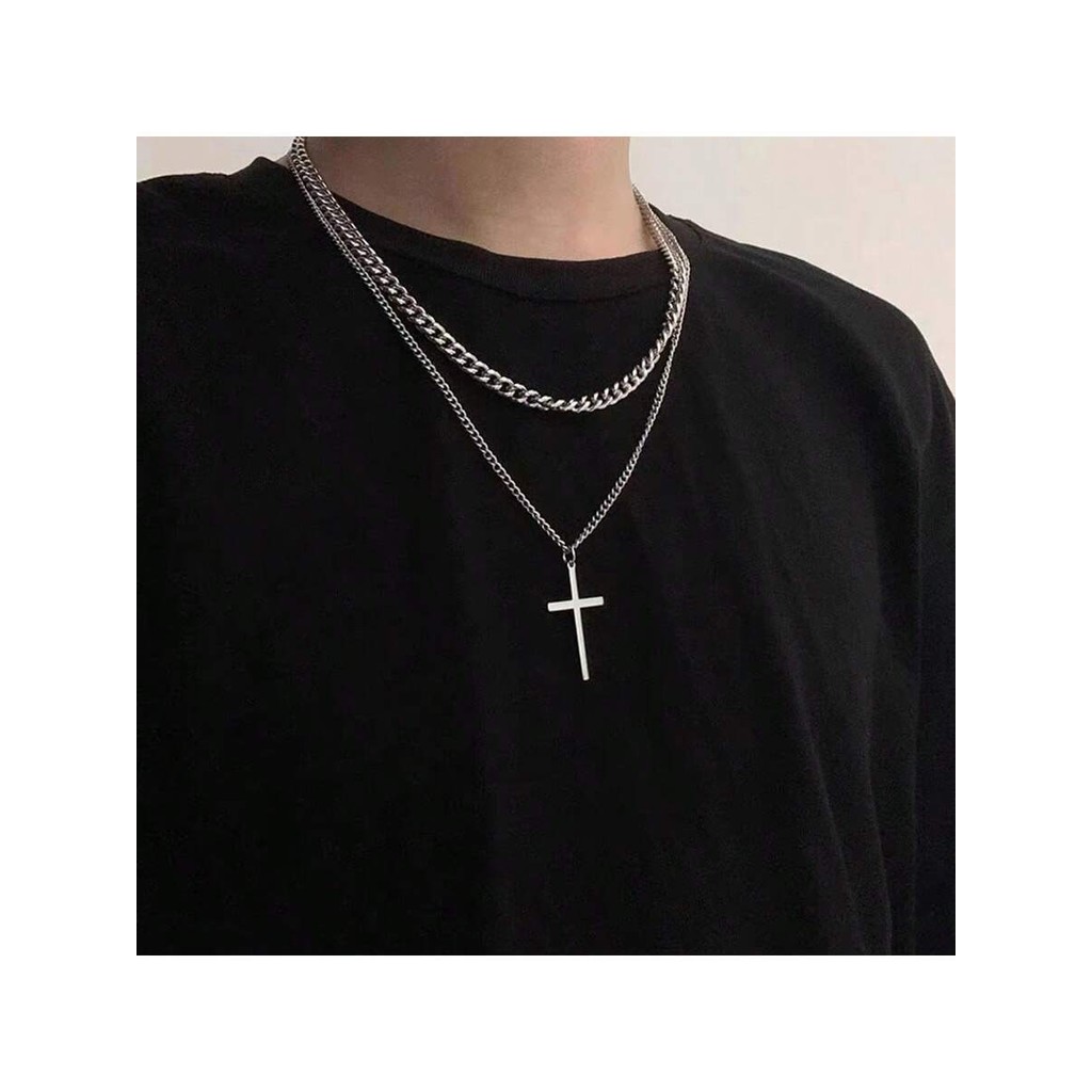 Colar Moderno Unissex Hip Hop Em Aço Inoxidável Camadas Com Design Cruzado