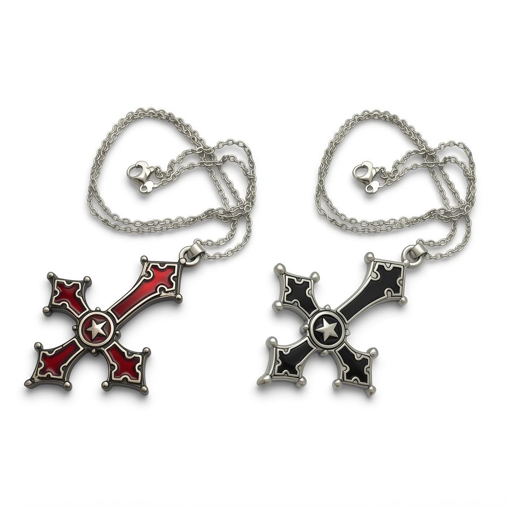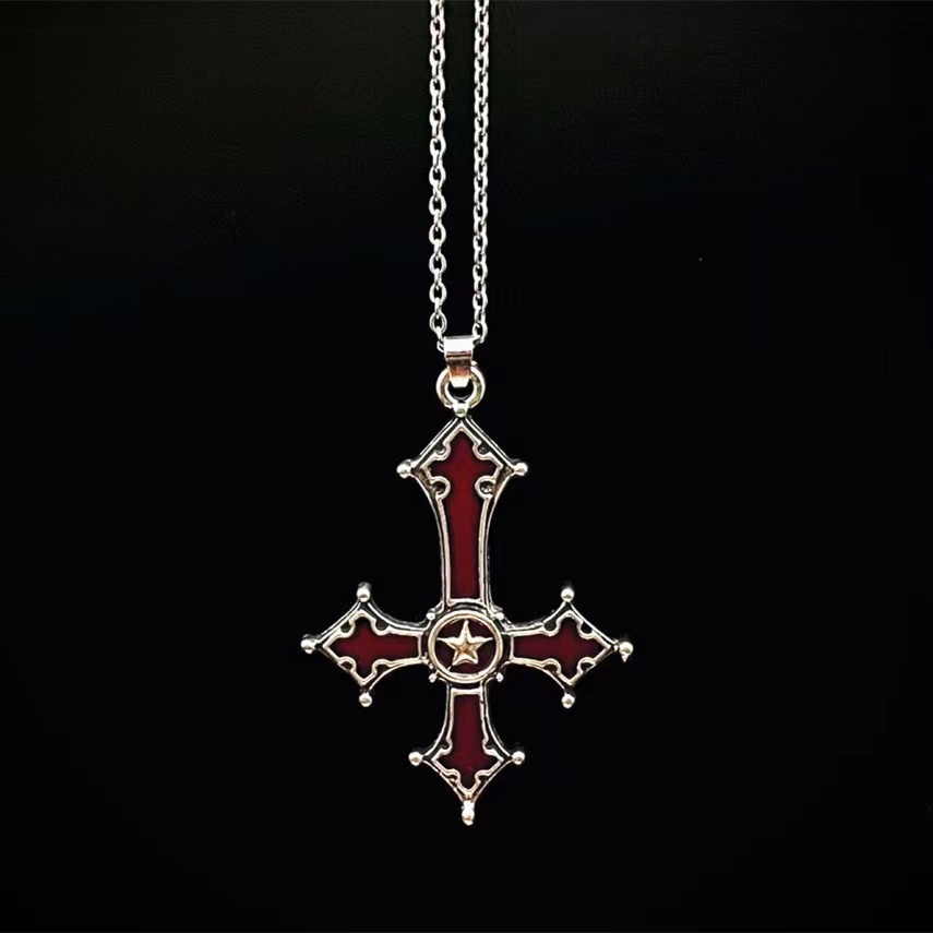Colar Vintage Com Pingente De Cruz Reversa Gótico Punk Vermelho Preto Para Amantes Da Moda