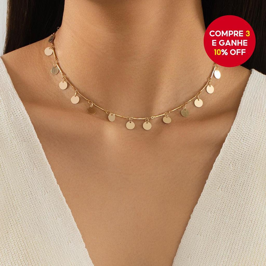 Colar de Pendentes de Distintivo Dourado Retro Simples para Mulheres - Lindo Colar Tipo Choker, Presente de Joalheria.