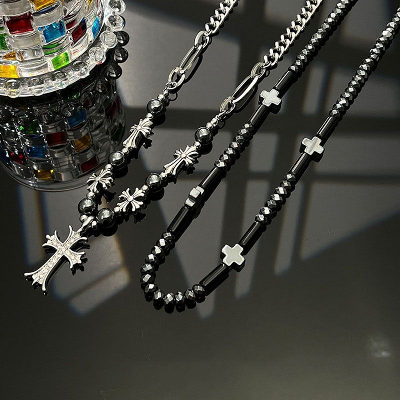 Colar de cruz masculino com design sofisticado e vibe fria, estilo hip-hop小众新款, perfeito para realçar o pescoço.