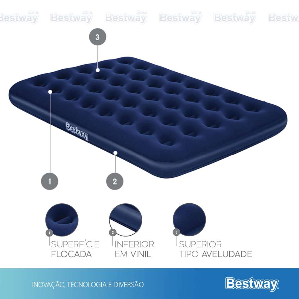 Colchão Inflável Suporta 300kg Casal Camping Praia + Bomba de Ar Manual Bestway