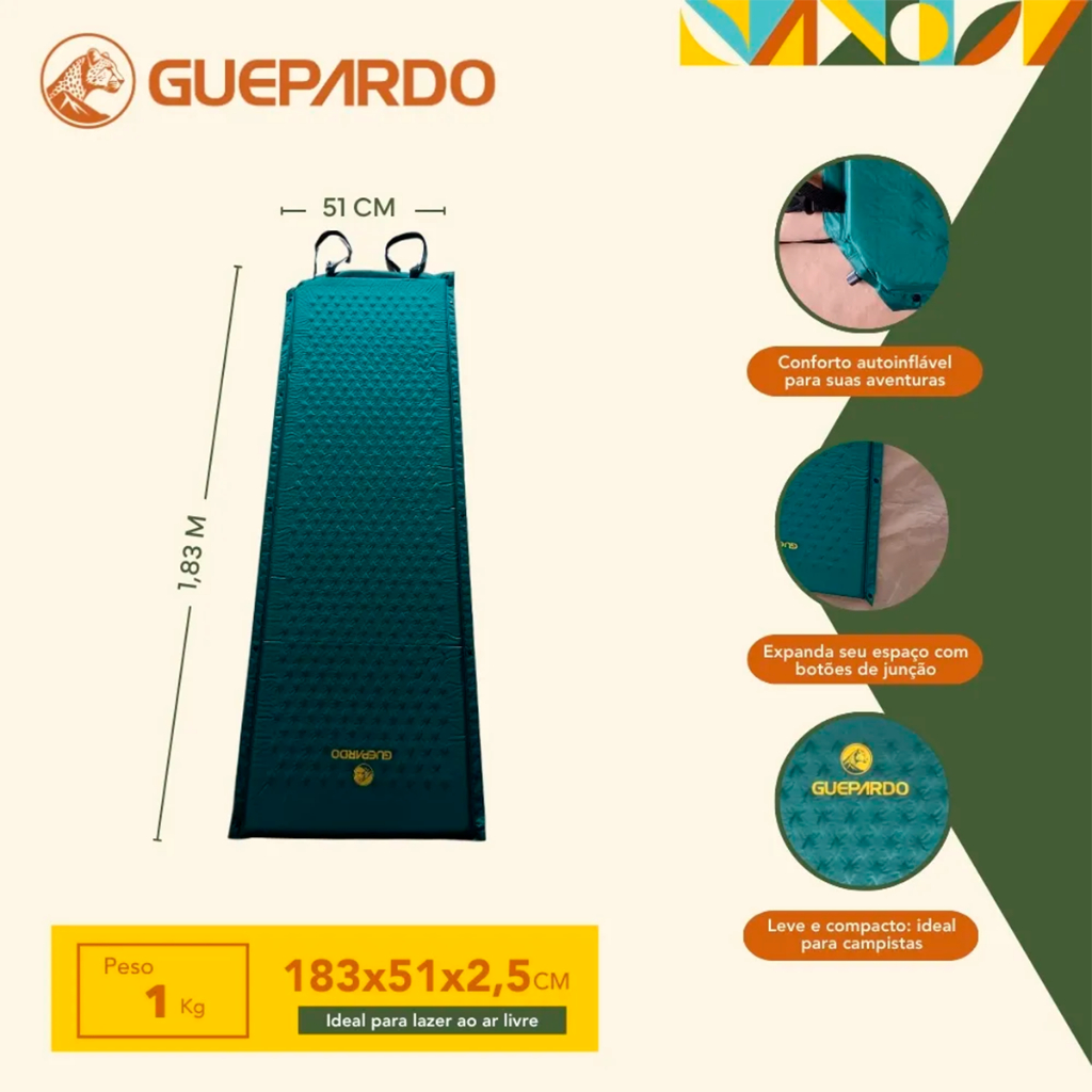 Colchonete Térmico Auto inflável Verde Isolante Grande 1,83 metros Guepardo