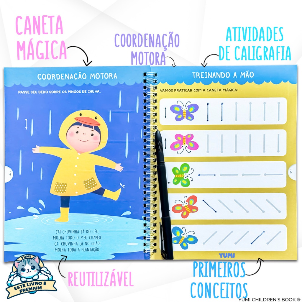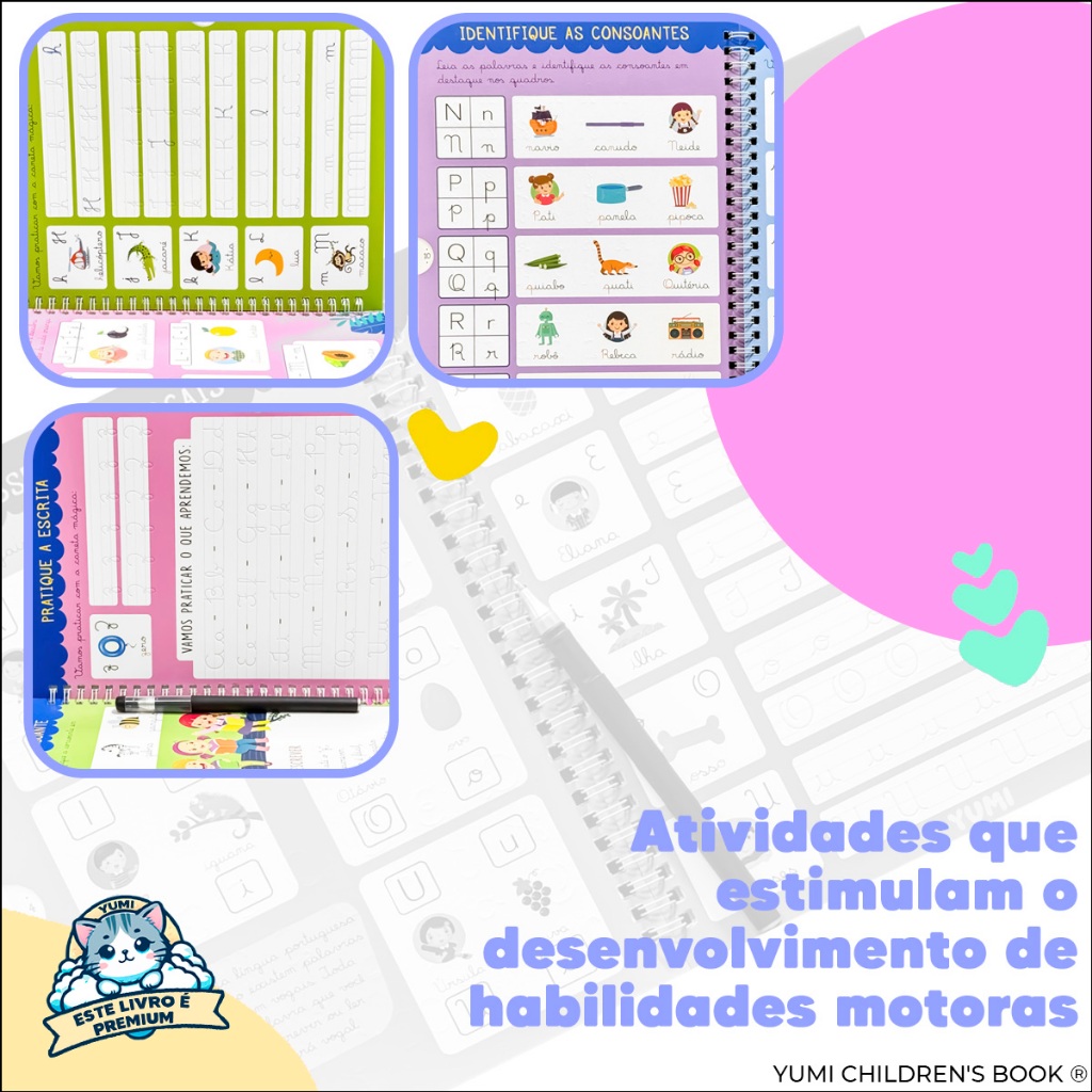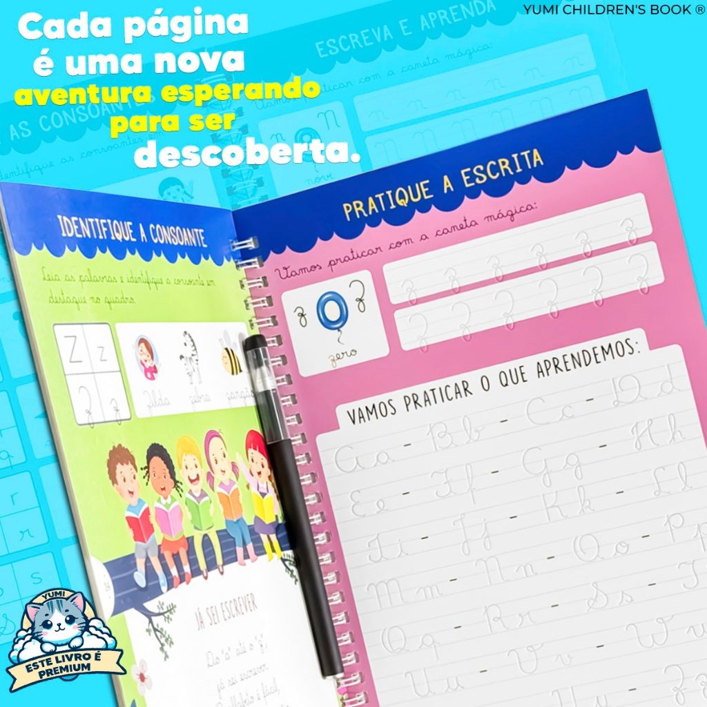Coleção Escolar Caneta Mágica - Livros Cartilha Alfabetização Caligrafia Exercícios Atividades
