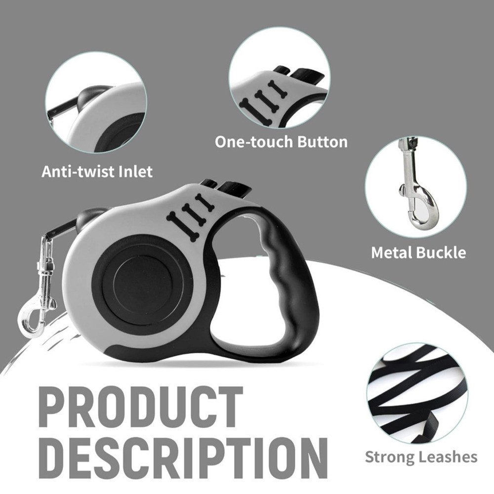 Coleira Guia Retrátil 3/5 Metros Para Cachorro e Gato/ Resistente Com Trava de Segurança/ Até 11.33kg - WYL