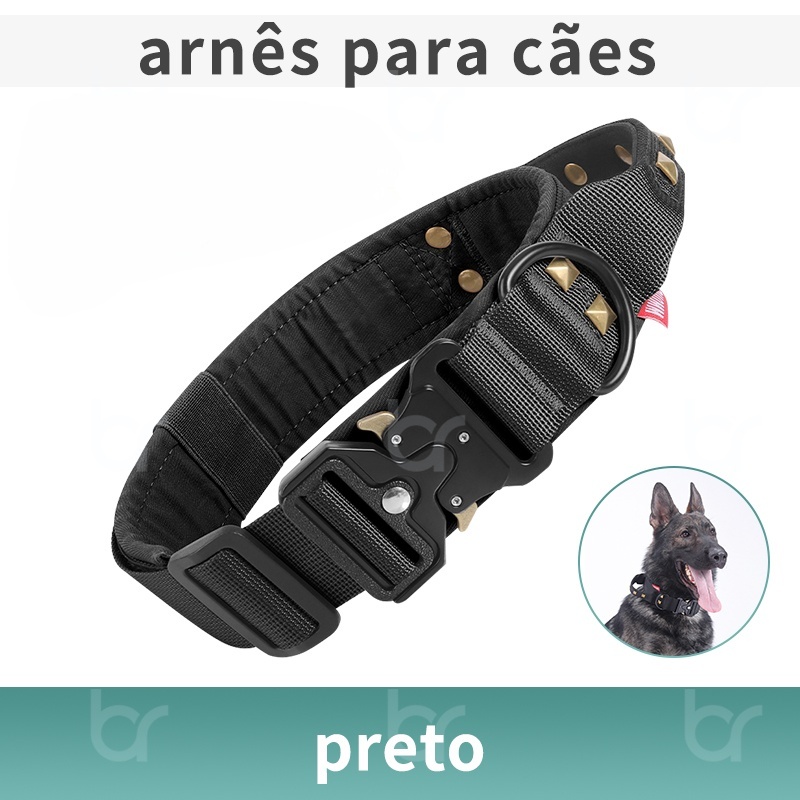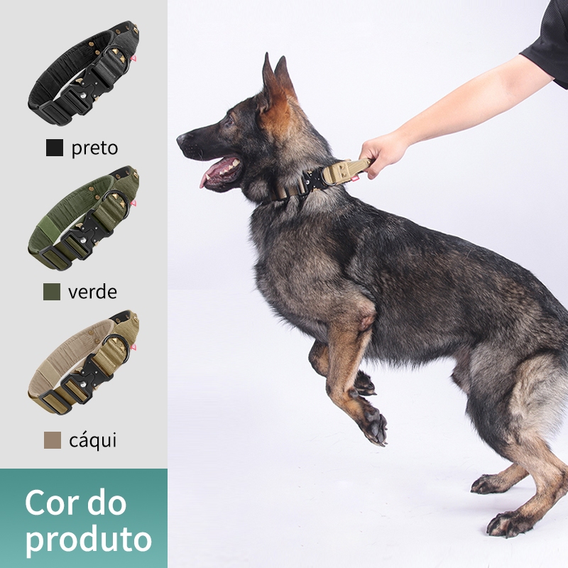 Coleira para cães, nylon para treinamento ajustável fivela de metal pesado para cães treinamento caminhadas