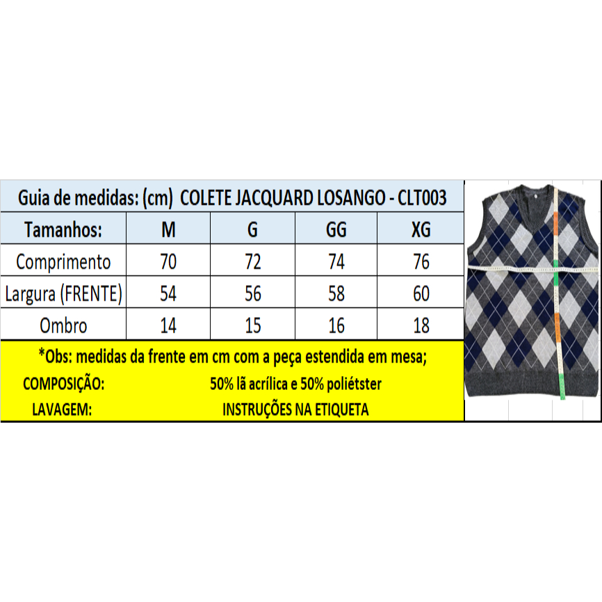 Colete pullover Masculino Jacquard Escosses Fino Gola V Classic