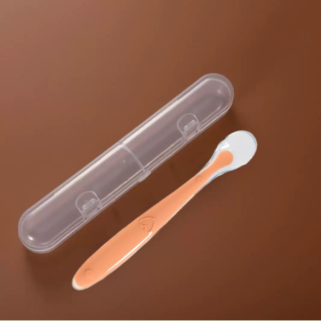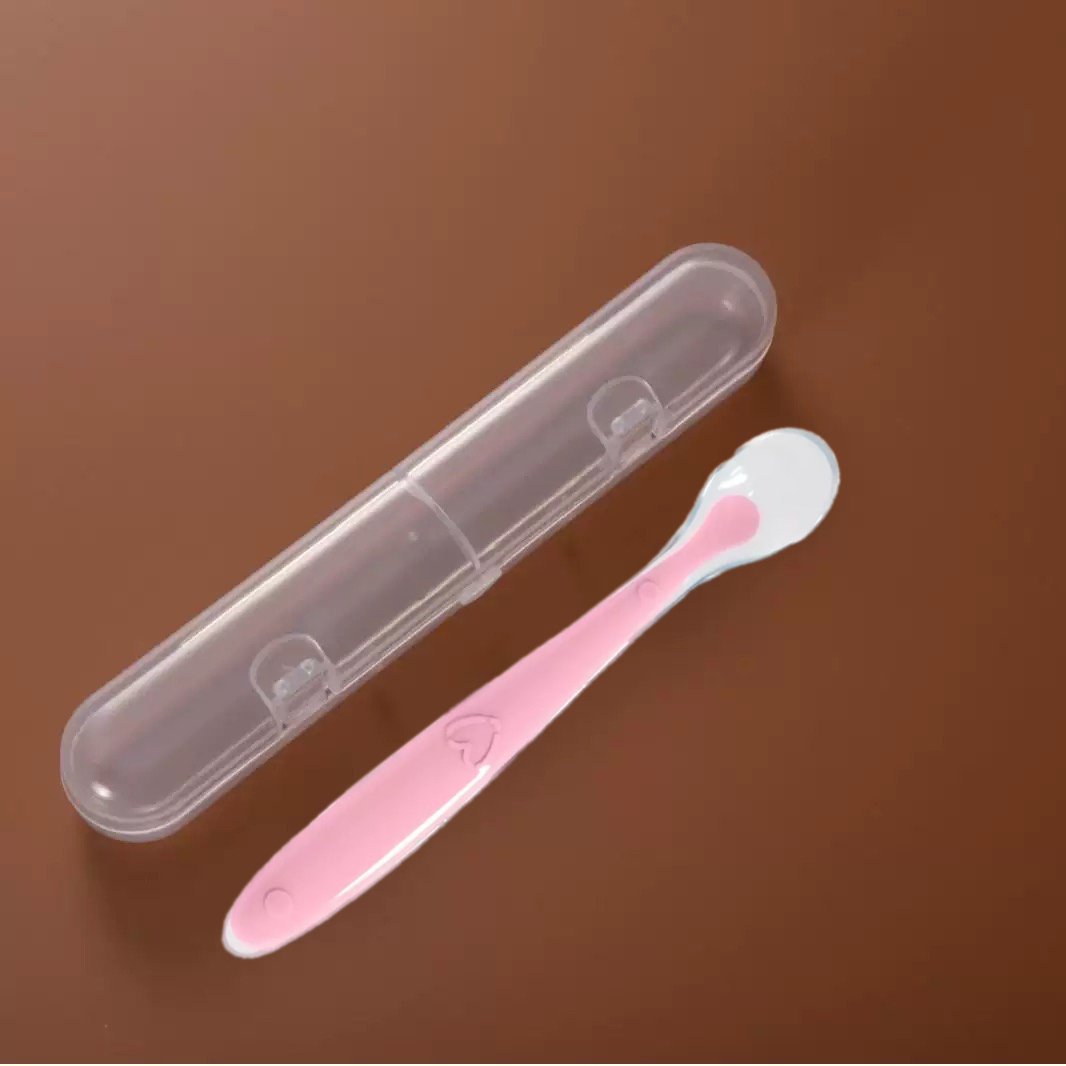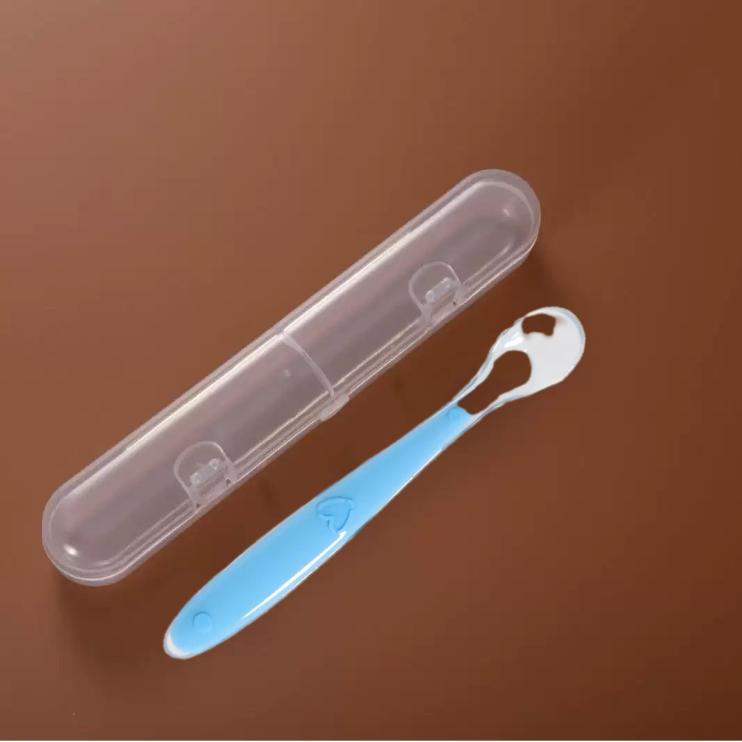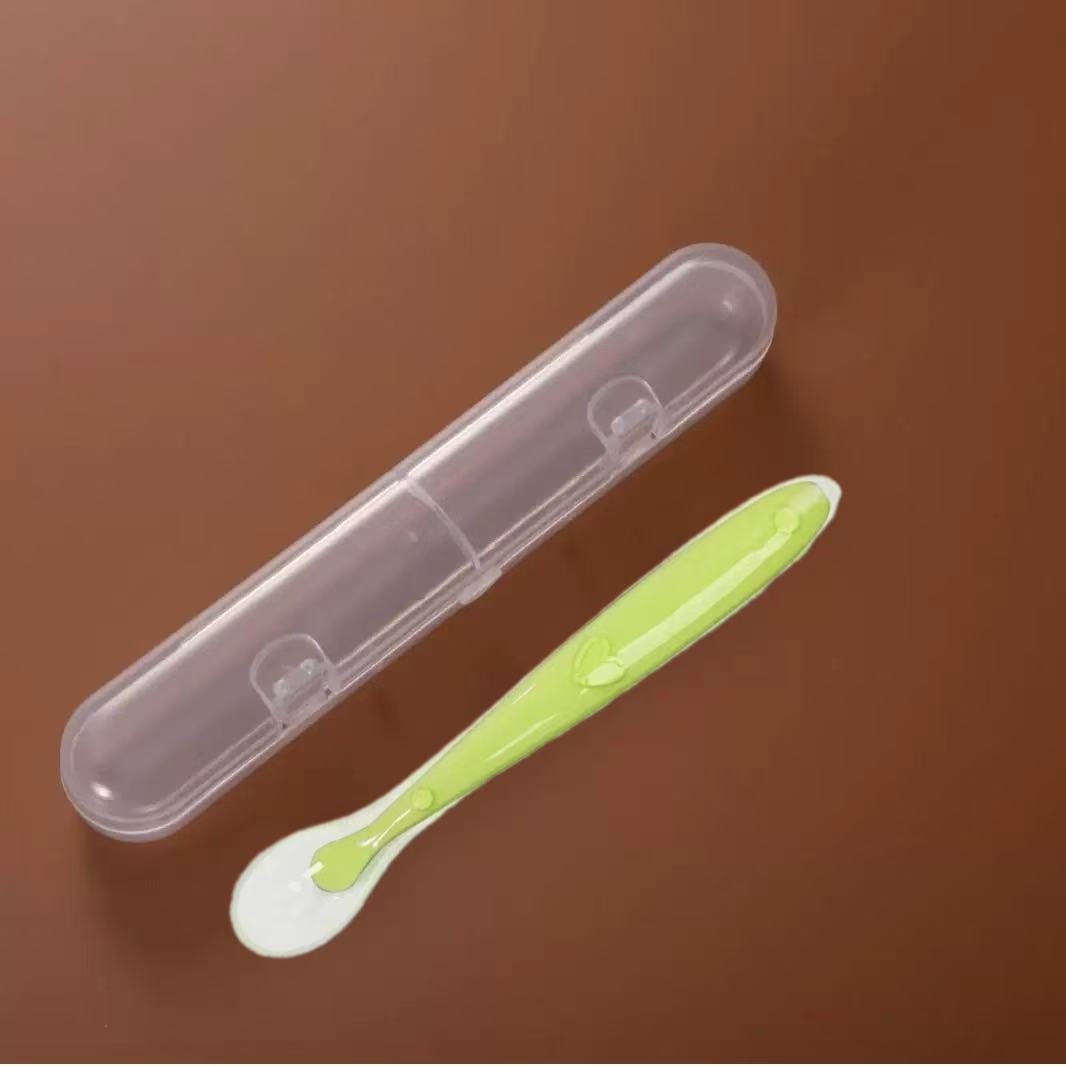 Colher De Treinamento De Silicone Para Bebês E Caixa De Armazenamento , Utensílio De Alimentação Macio Crianças , Conjun