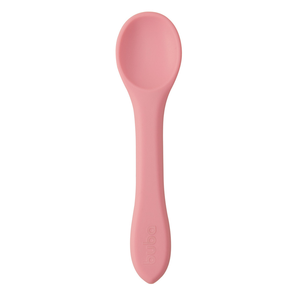 Colher Flexível Rosa em Silicone Para Bebês +6 Meses Buba