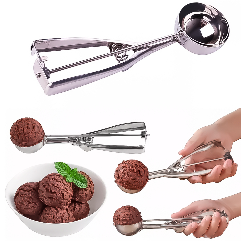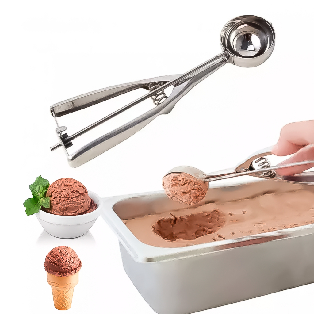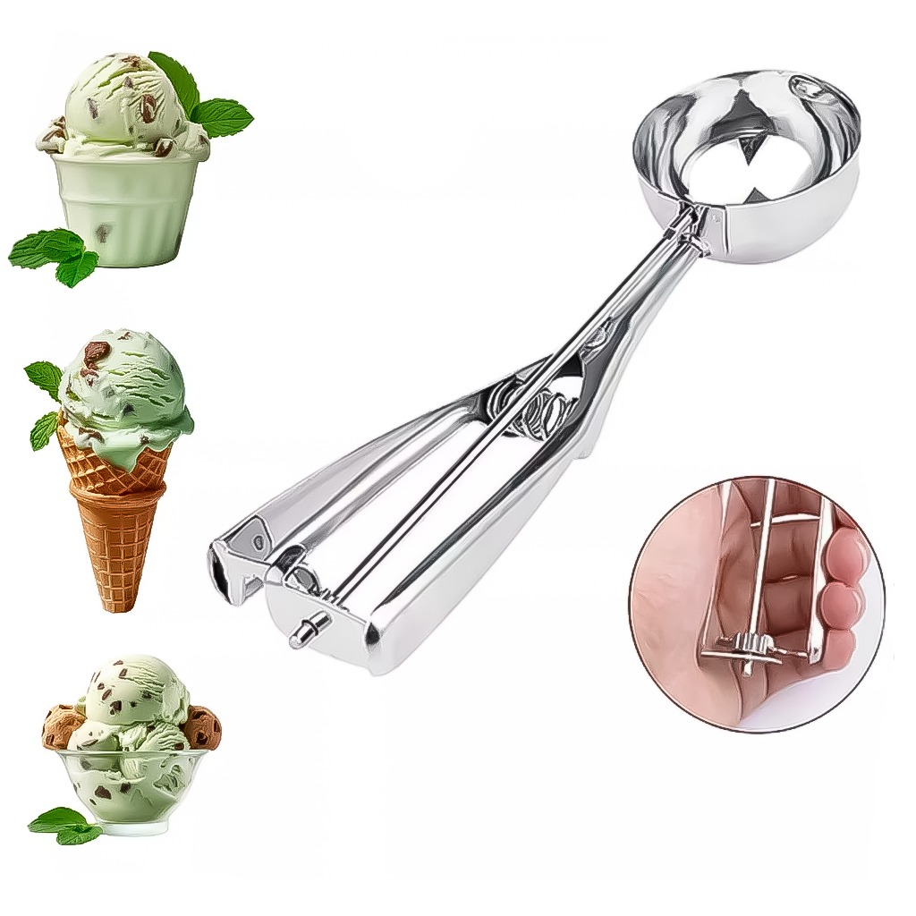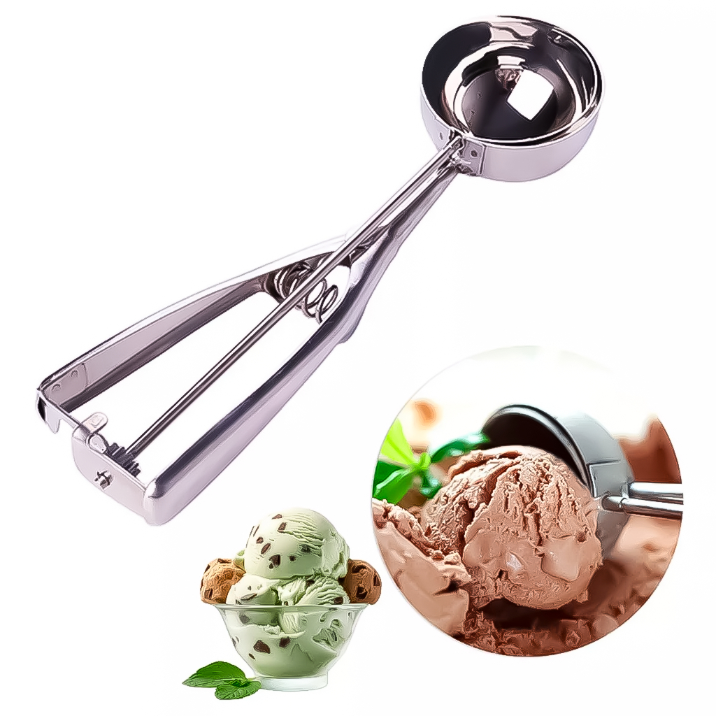Colher Pegador De Sorvete Com Ejetor Manual Em Aço Inox Tipo Bola Concha Sorveteria Prático