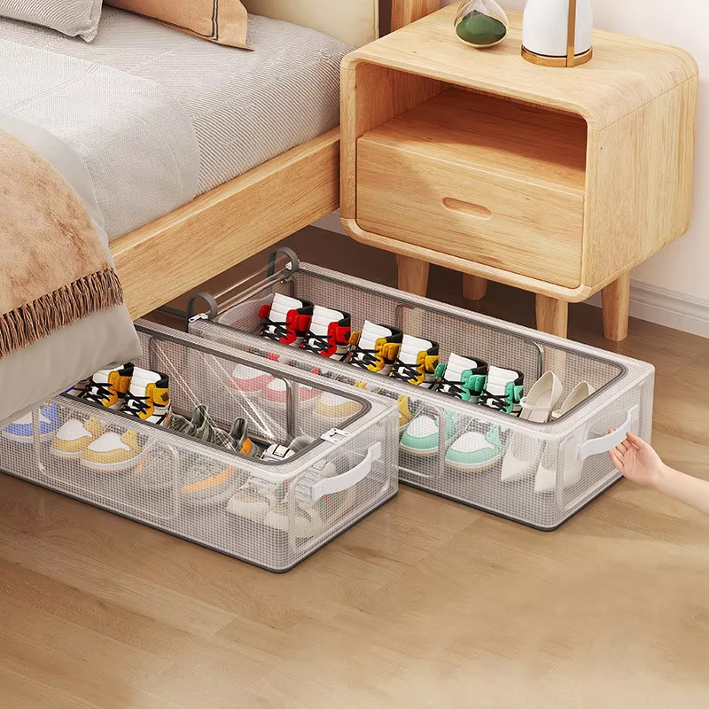 Com zíper Caixa de armazenamento empilhável para sapatos, caixa de armazenamento transparente multifuncional em concha