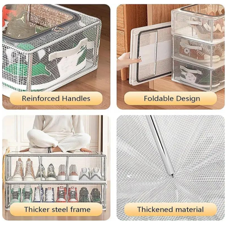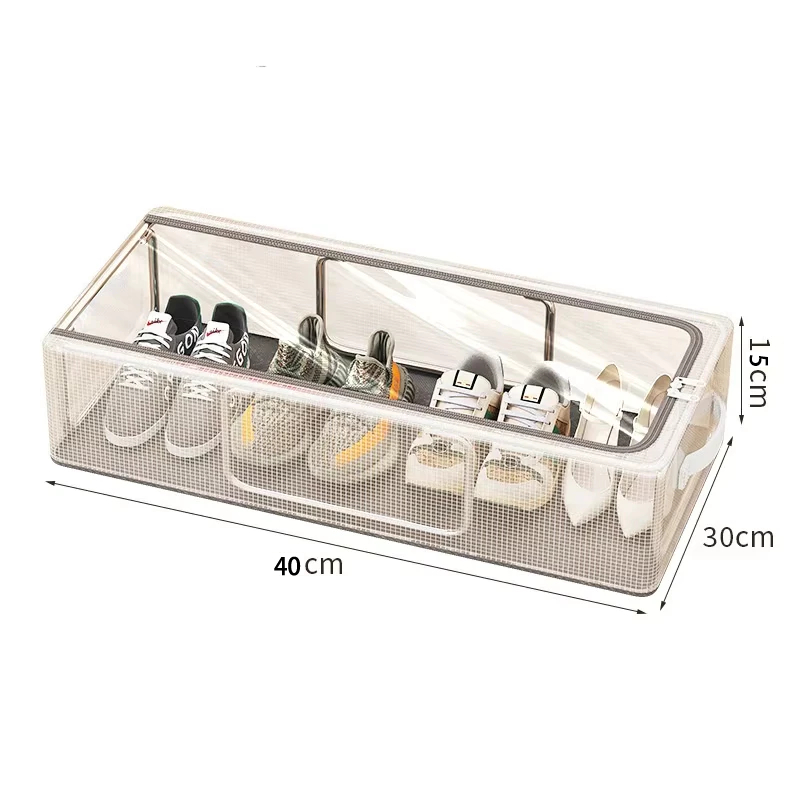 Com zíper Caixa de armazenamento empilhável para sapatos, caixa de armazenamento transparente multifuncional em concha