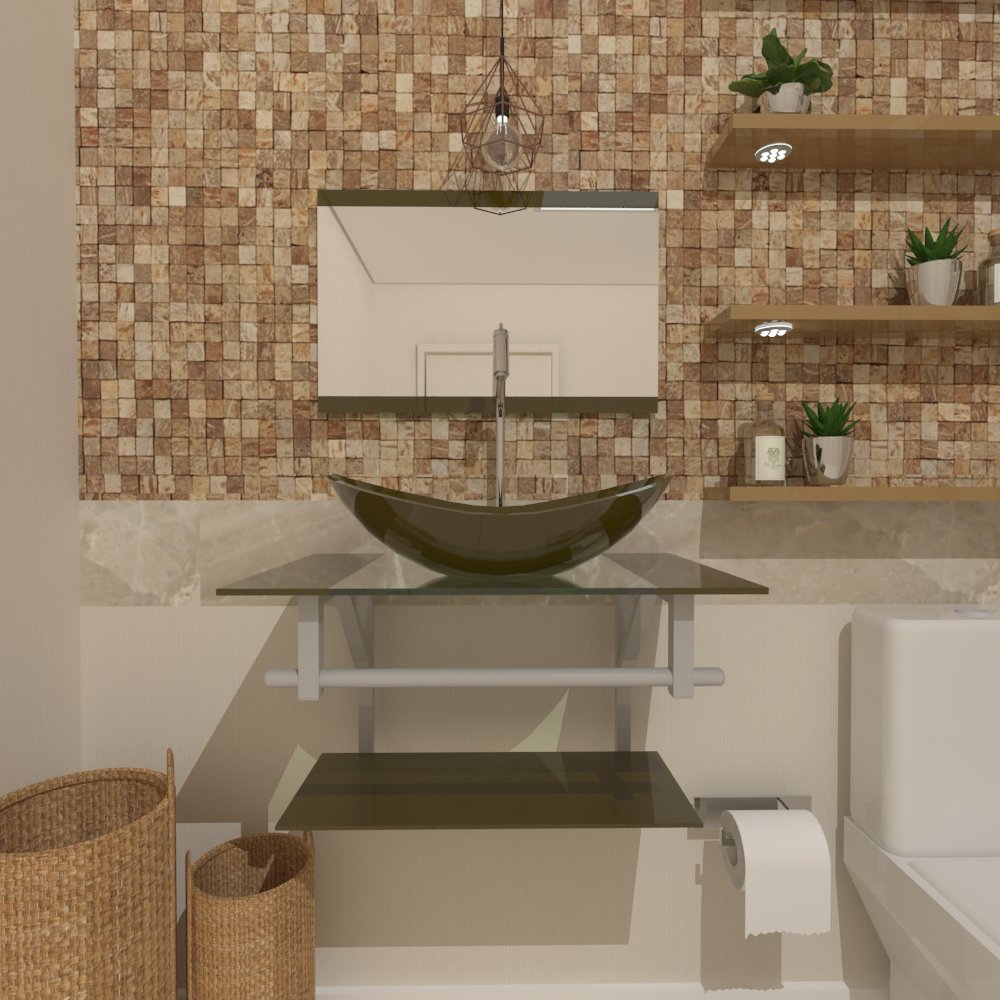 Combo 2 Em 1 Gabinete De Vidro 60cm Ac Com Cuba Oval + Torneira Algarve - Ouro Envelhecido