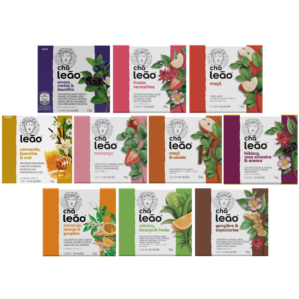 Combo Chá Leão Frutas e Flores - 10 Caixas 100 Sachês