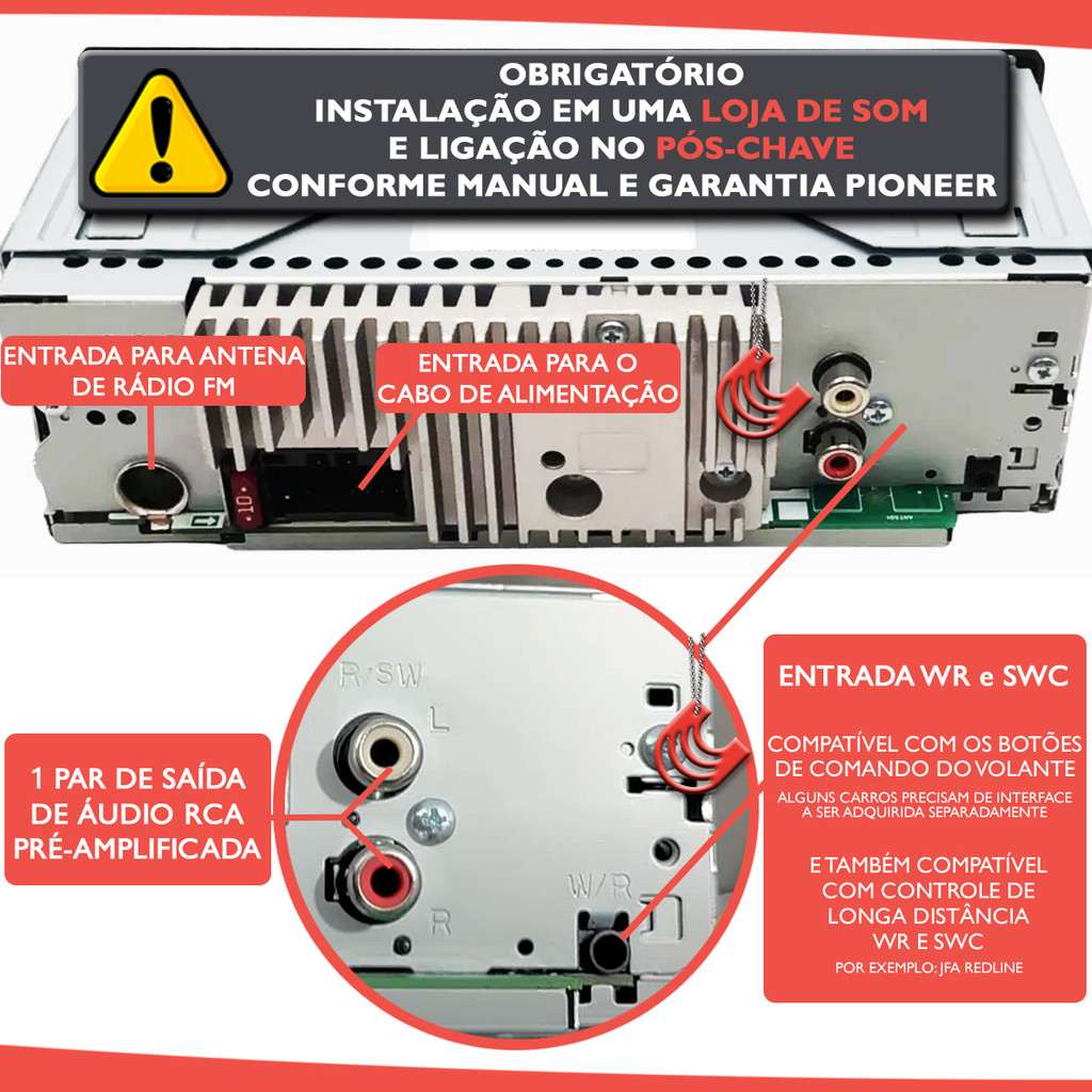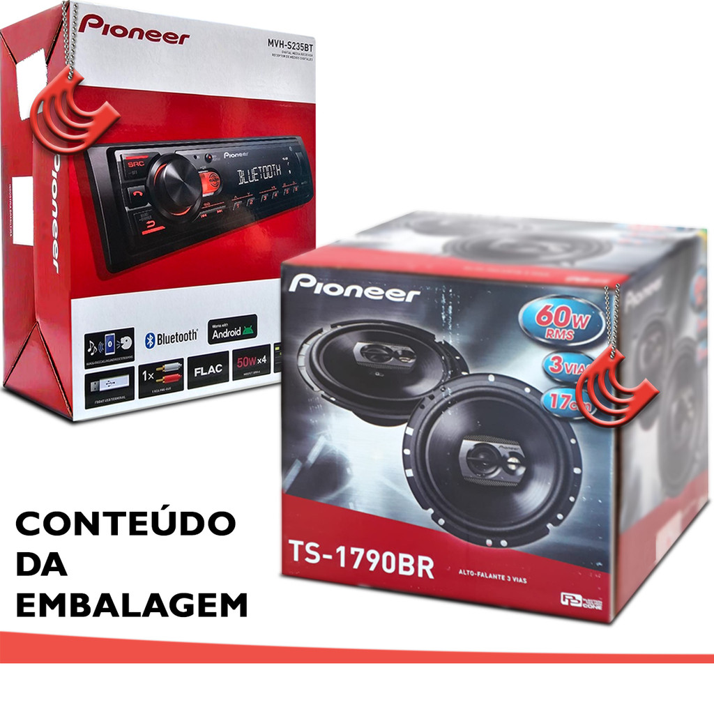 Combo Kit Auto Radio Som Aparelho Automotivo Usb Pioneer +2 Falantes Triaxial 6" Dianteiros Portas