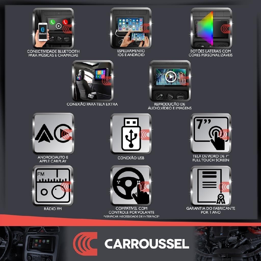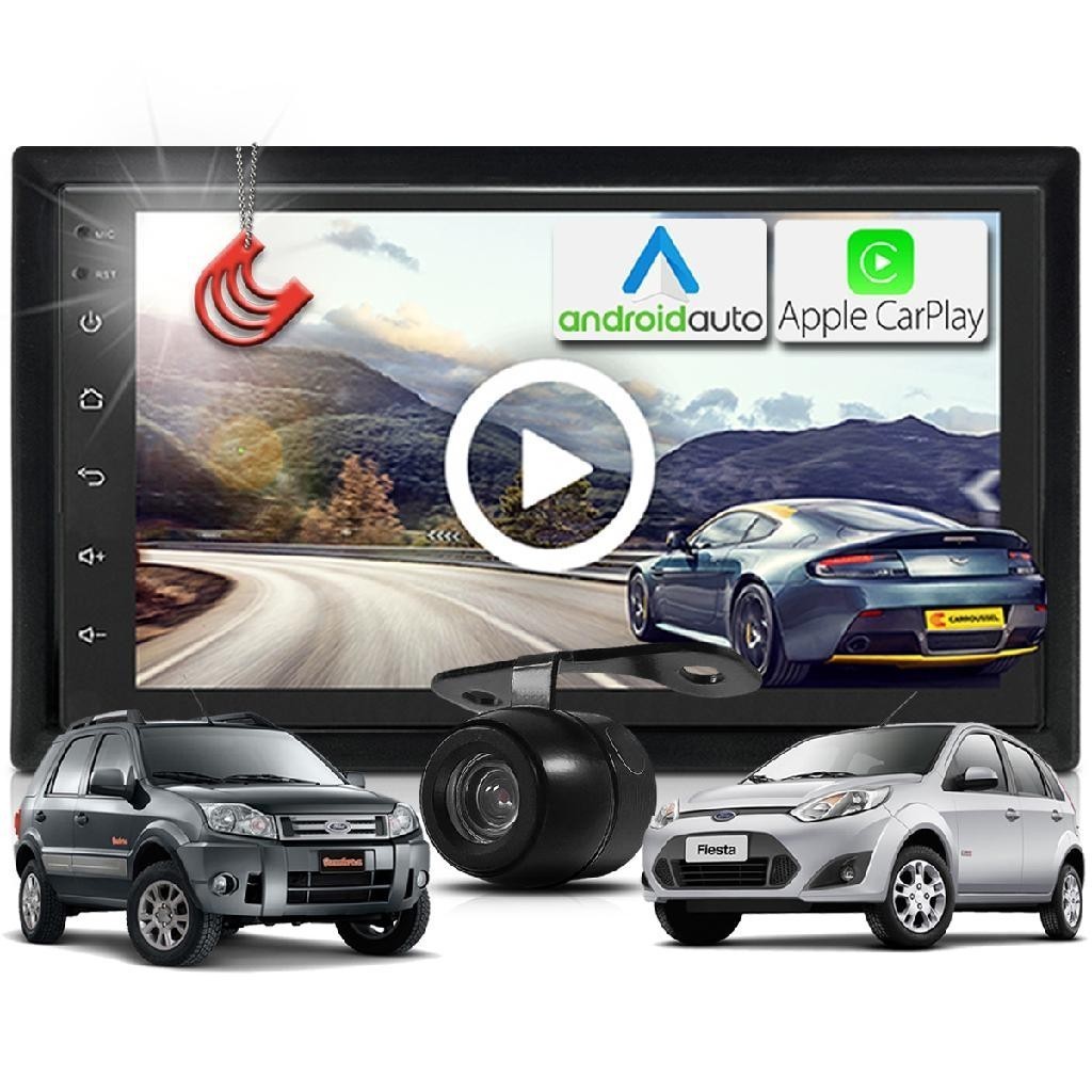 Combo Kit Central Multimidia MP5 + Camera de ré + Moldura Preta Fiesta Ecosport AndroidAuto CarPlay